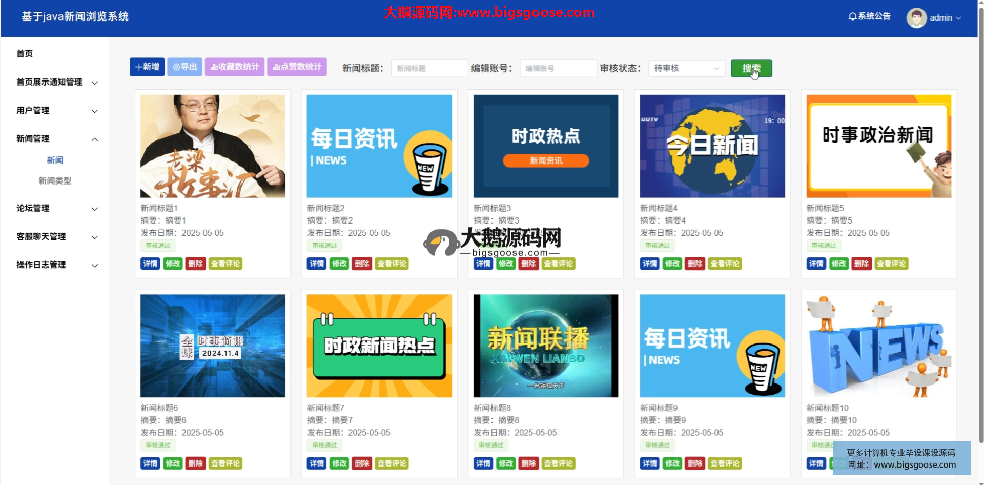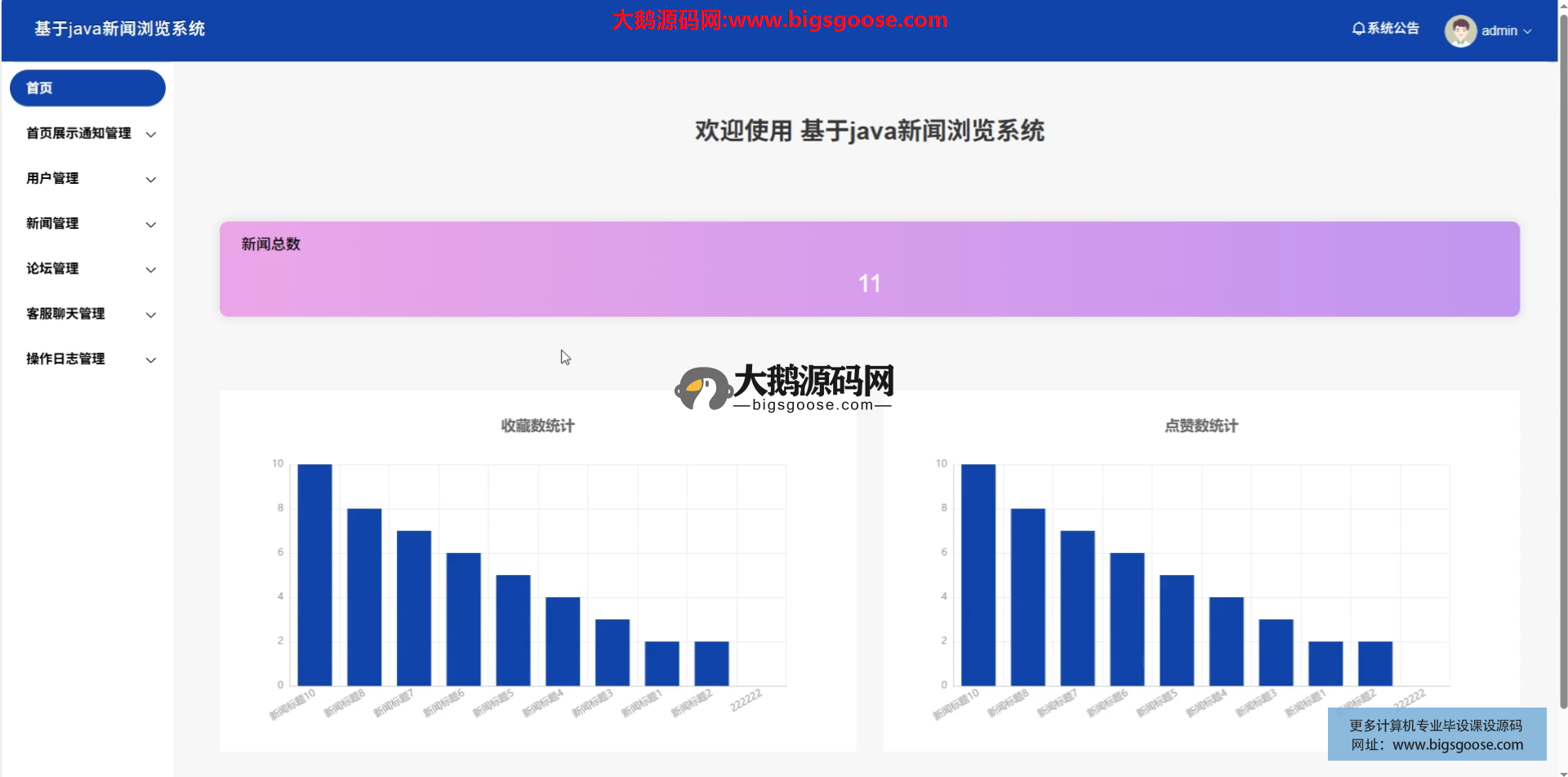 轻量化新闻浏览系统,汇聚实时热点与深度报道,用户边看边评、点赞收藏,在线客服即时答疑;编辑后台采编发一条龙,数据看板反馈热度;管理员统筹内容、用户与公告,确保信息权威、社区清朗。