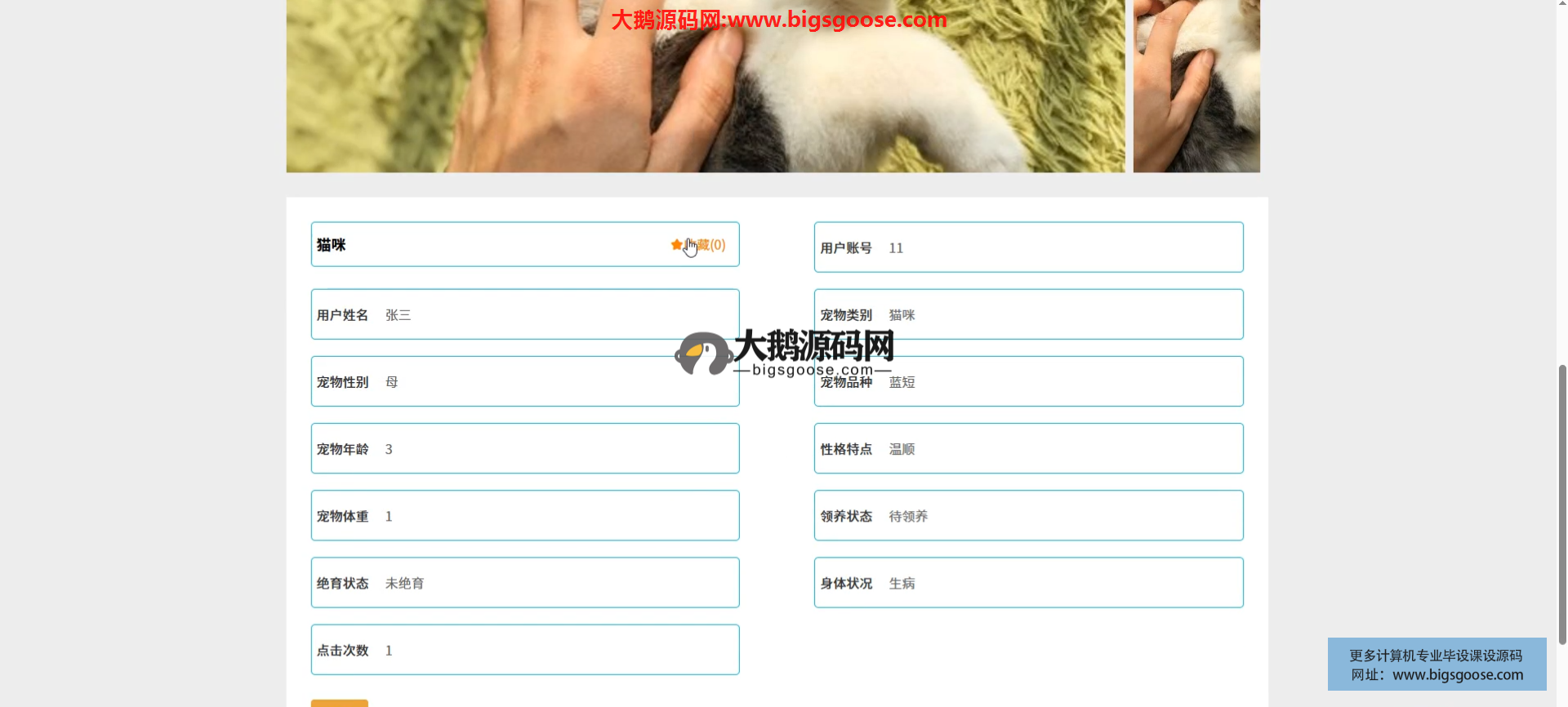 宠物信息:高清图+性格标签+疫苗档案,支持收藏对比一键申请