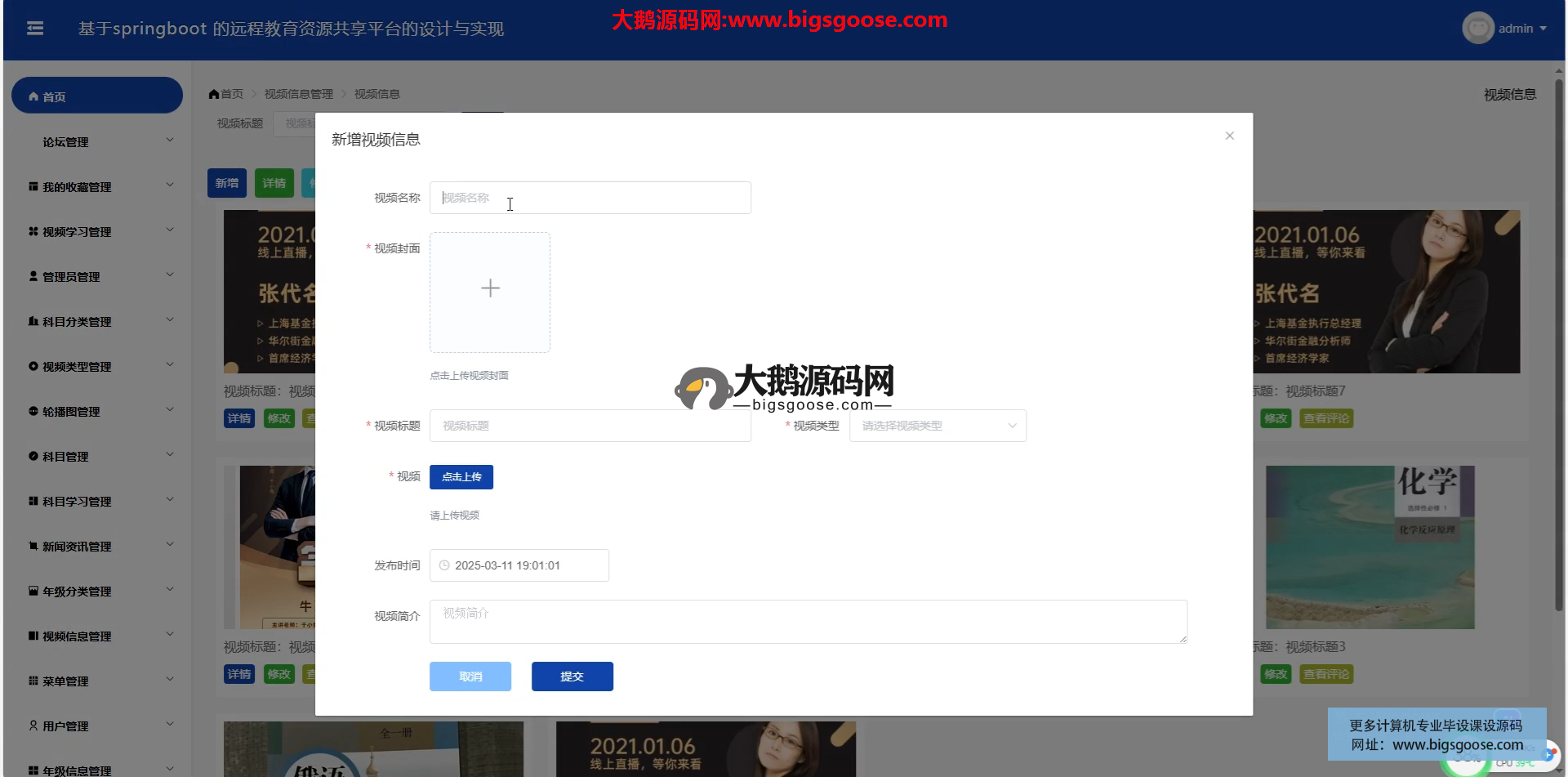 视频信息管理:上传、转码、封面截取、关键词标引、版本更新,支持批量导入与自动去重。