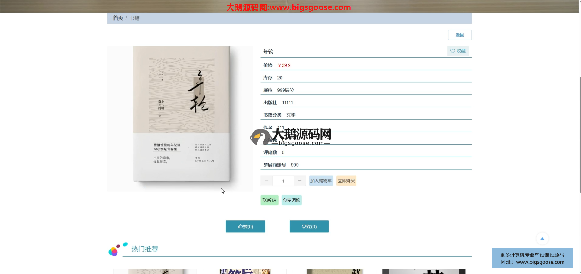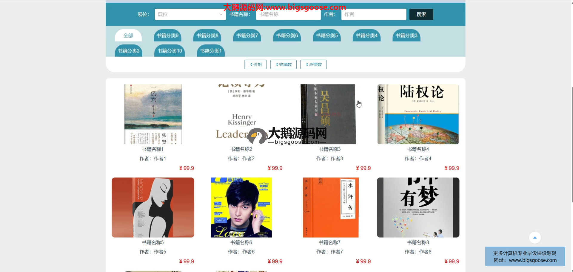书籍:支持搜索、筛选、收藏,展示价格、库存、简介等详情