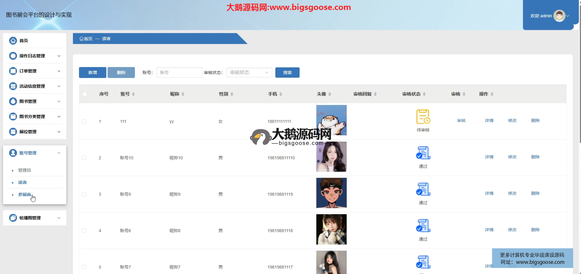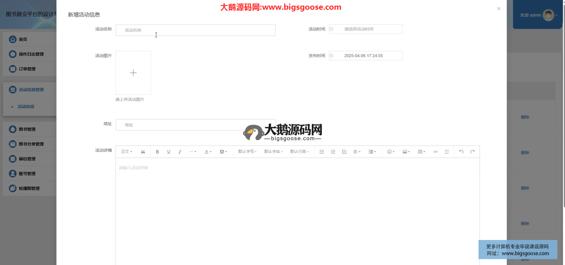 活动信息管理:审核、发布、置顶展会活动,支持报名名单导出