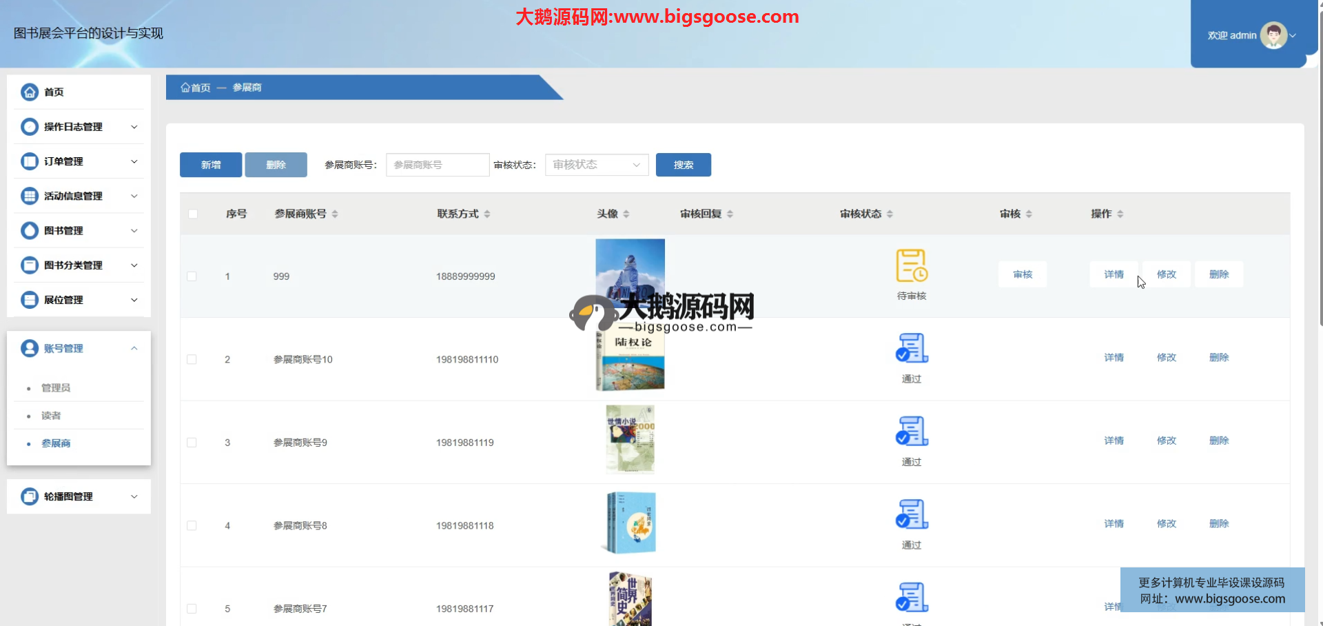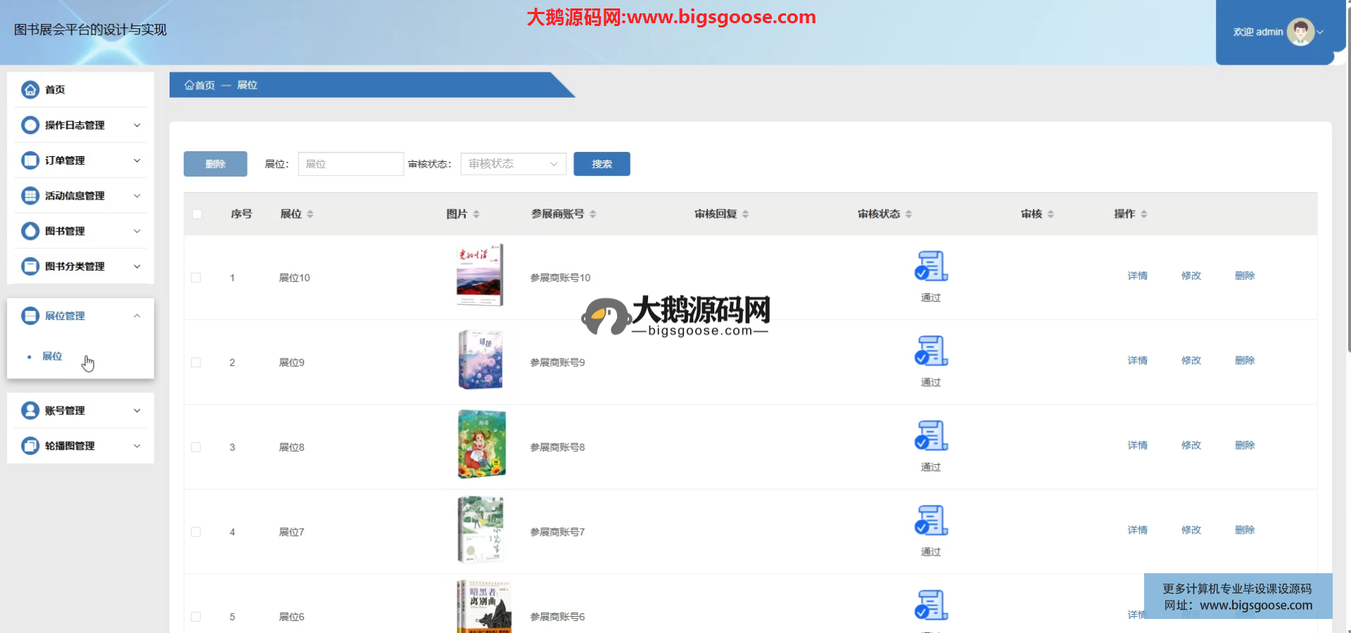 展位管理:分配展位编号,审核装修样式,设置展期与权限
