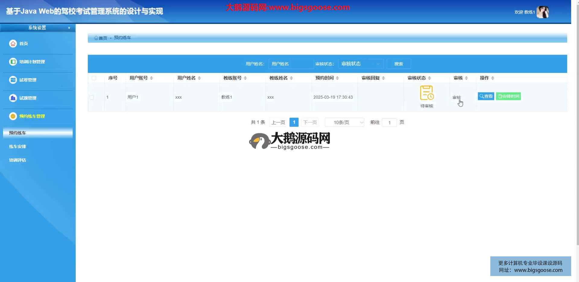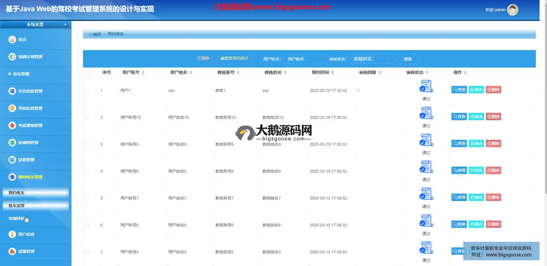 预约练车管理:实时接收预约,可确认、拒绝、调换,生成签到表