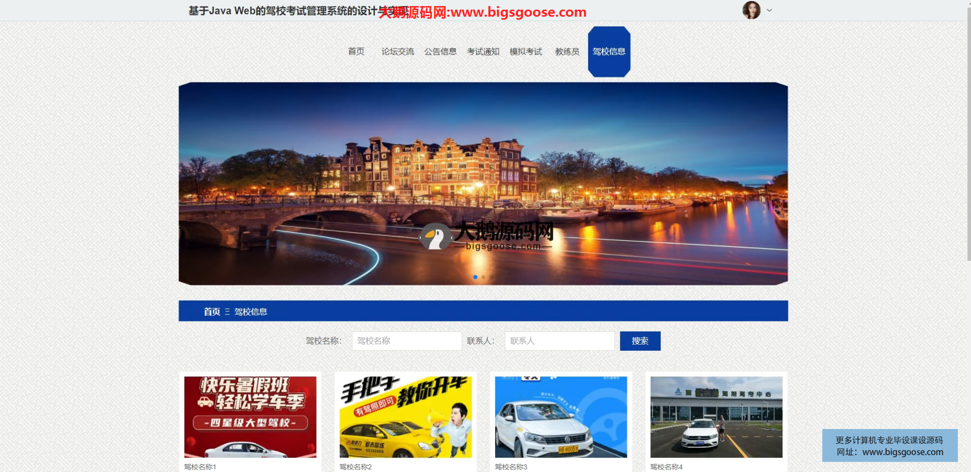 驾校信息管理:维护校区、车辆、教练、资费,图片与文字即时更新