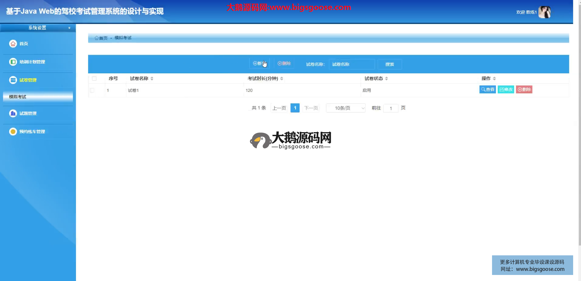 试卷管理:配置科目一/四随机规则、难度比例,一键生成多卷