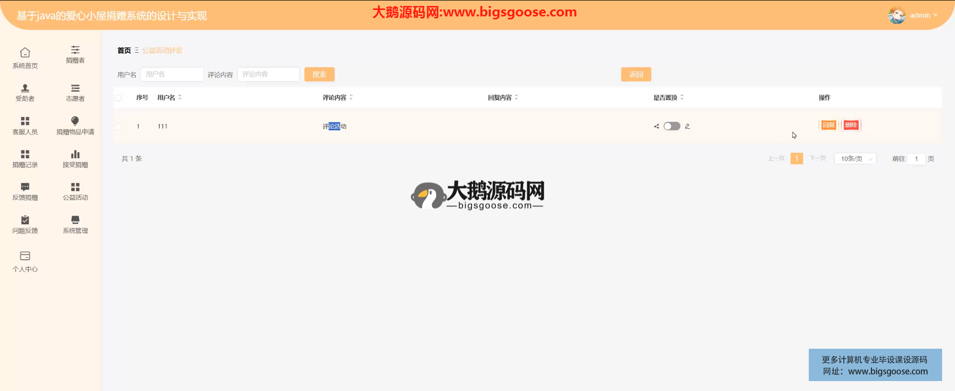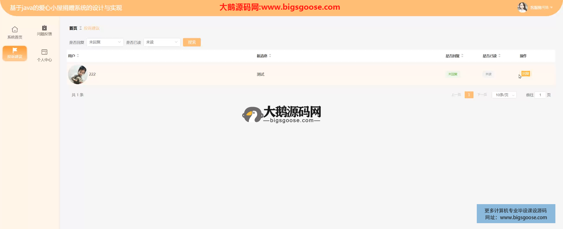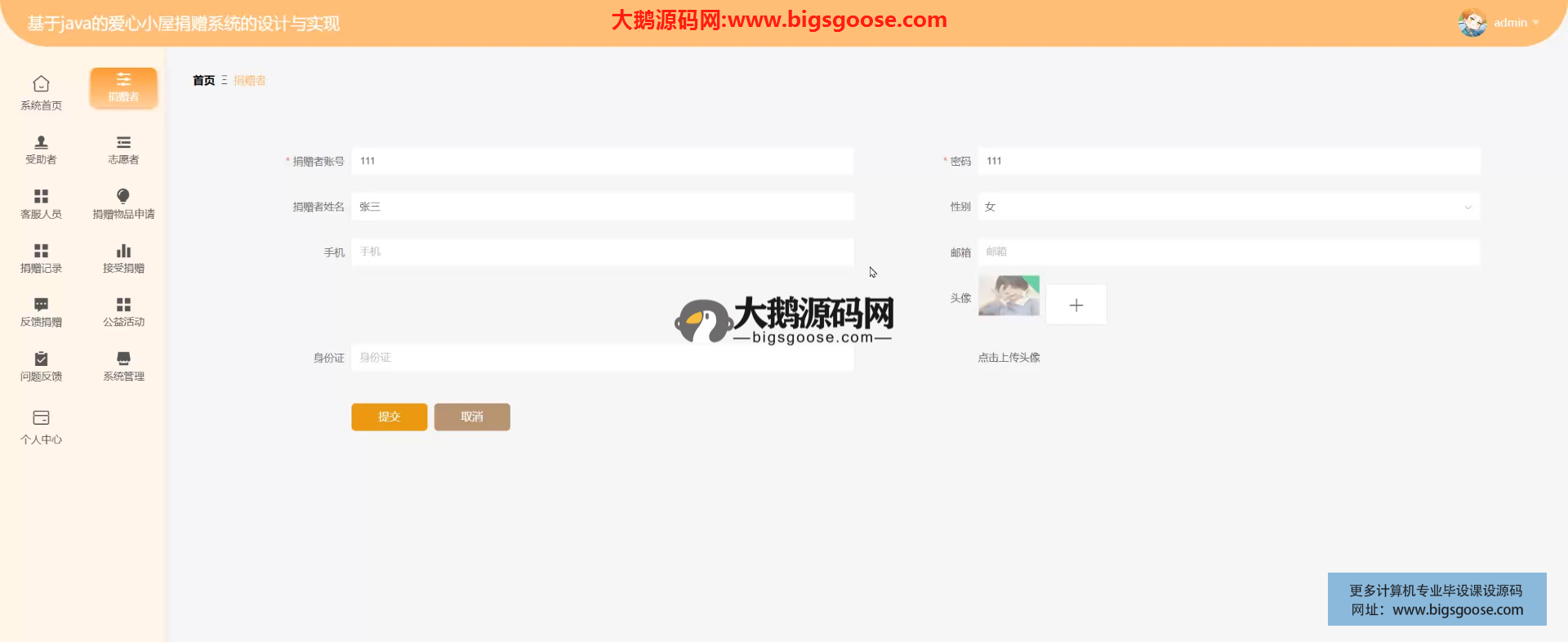 基于SpringBoot框架实现的爱心小屋捐赠系统,本项目适合作为计算机毕业设计、java毕业设计、微信小程序毕业设计、课程设计、大作业等参考和学习,另外本站承接计算机毕设项目开发、毕业论文辅导、论文修改、降重润色、程序讲解、答辩辅导、开题定题等毕业一条龙服务,包原创、包通过!欢迎咨询~