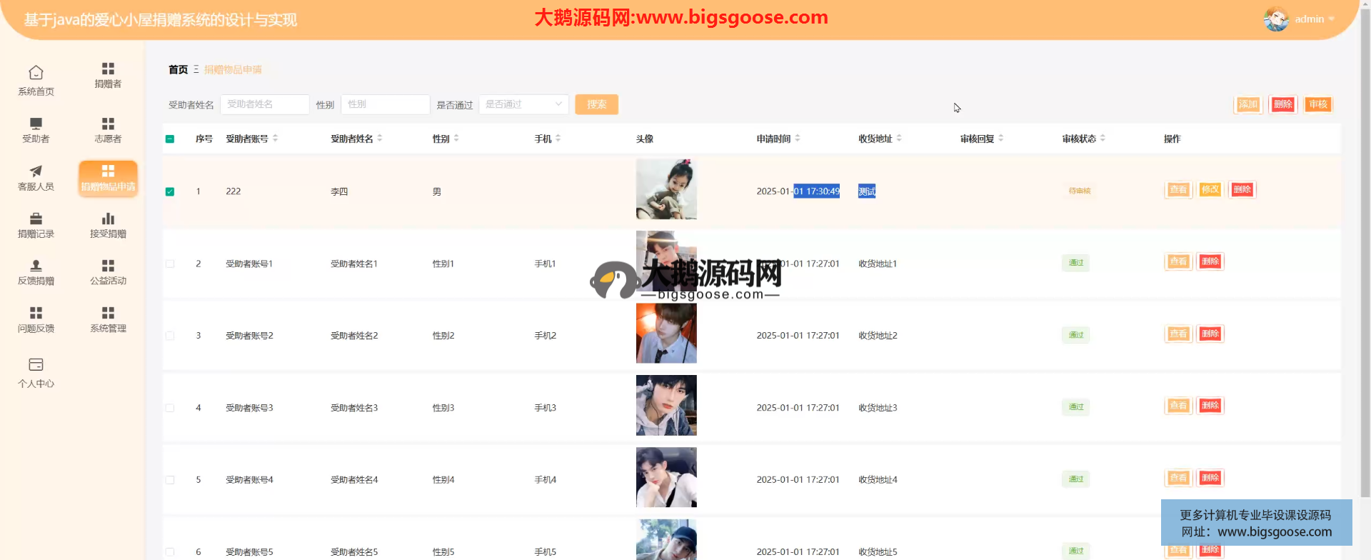 查看捐赠记录信息:个人历次捐赠时间、物品、去向全程可追溯,支持导出。
