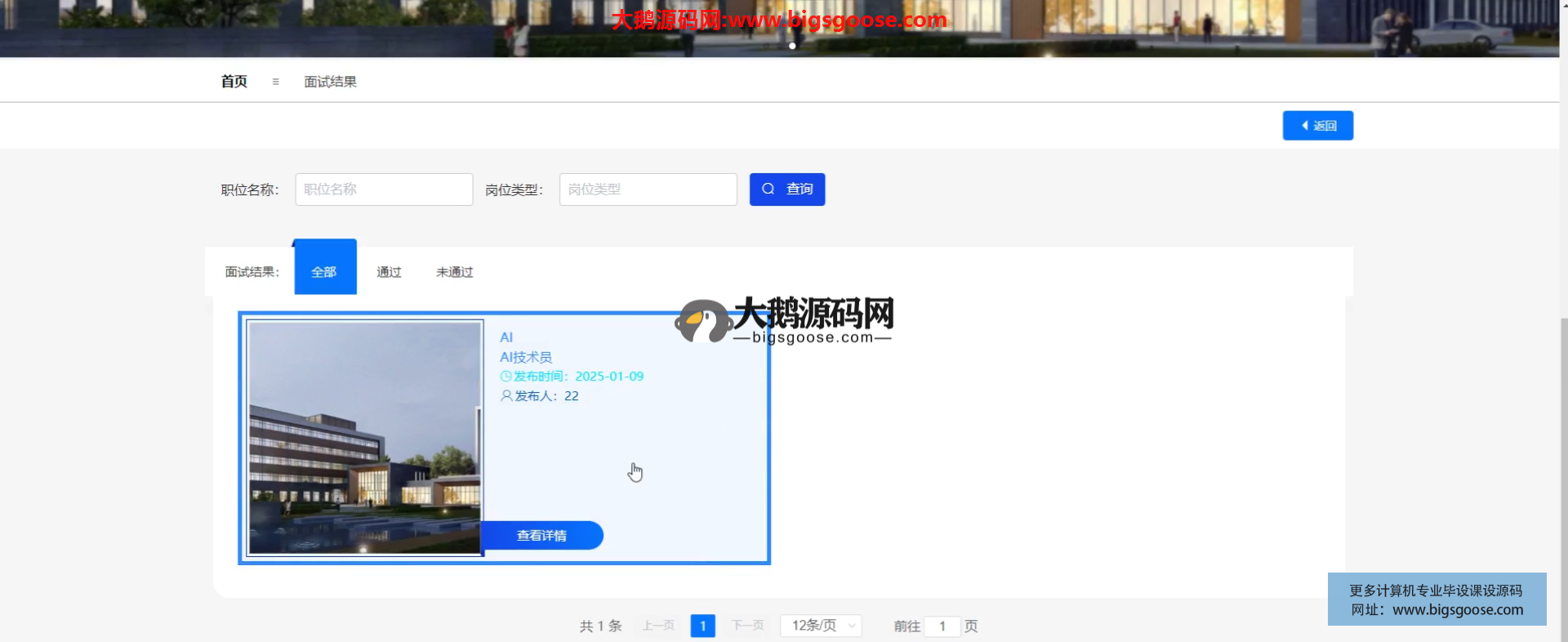 面试结果查看:状态进度条展示,通过与否附带企业反馈与建议。