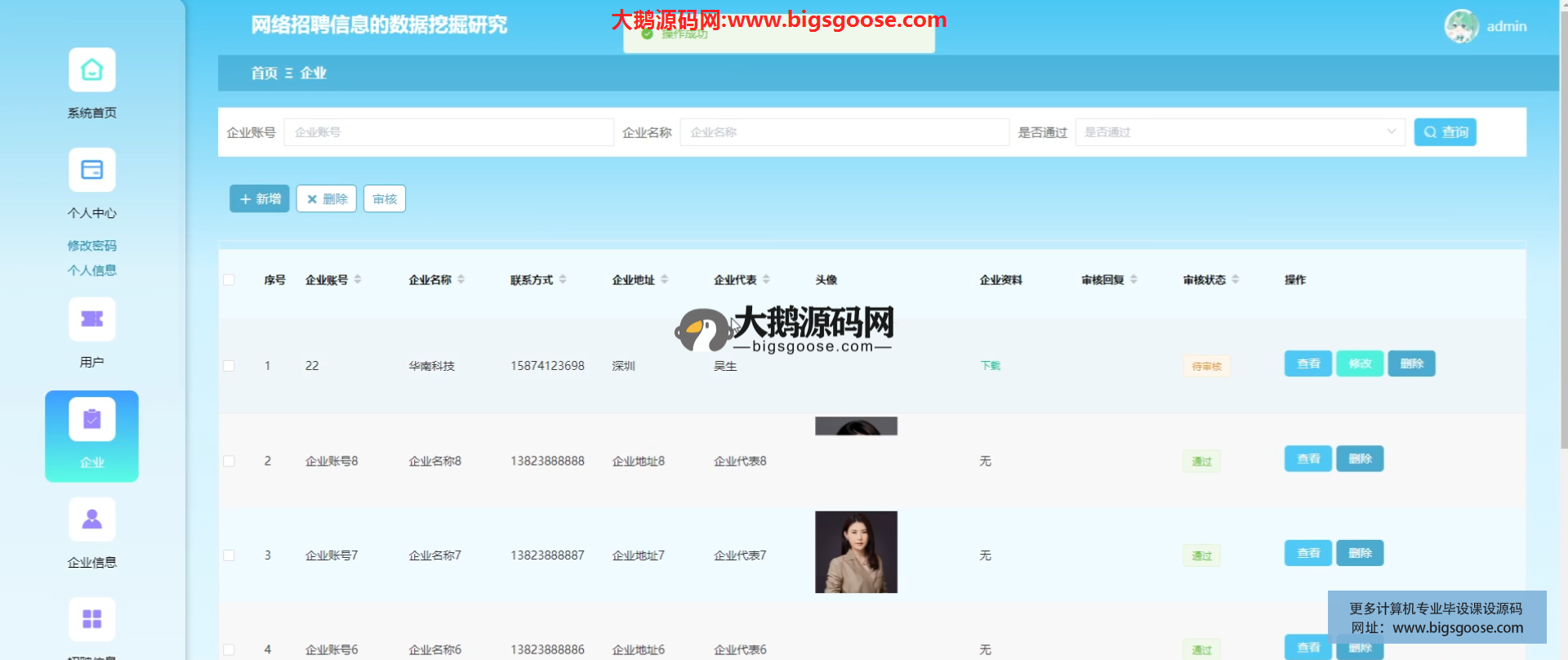 招聘信息管理:审核发布内容,违规信息下架,热度异常数据预警。