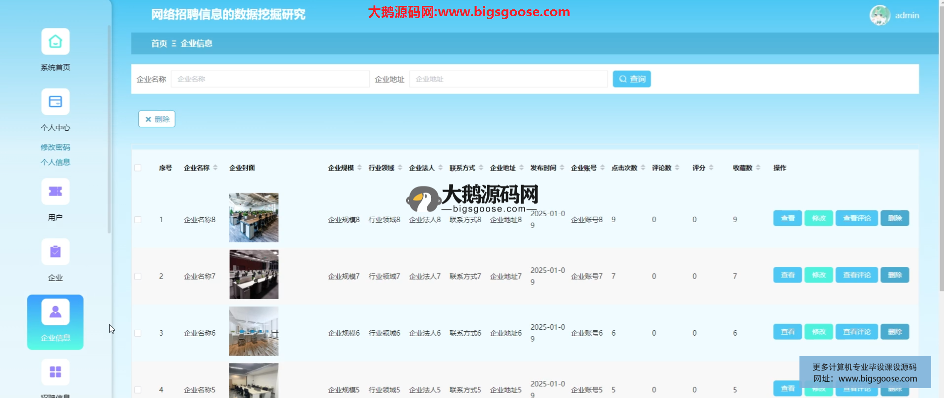 企业管理:审核入驻资质,统计发布量与反馈,评分低者限制权限。