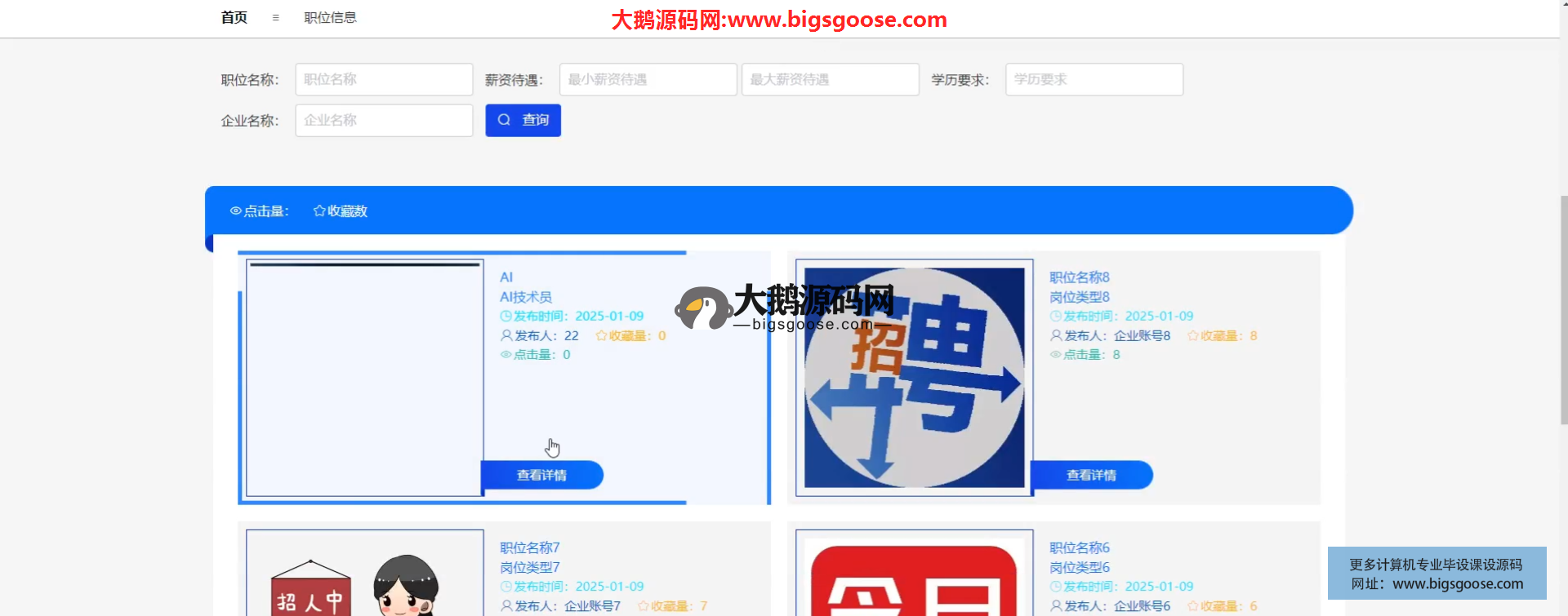 招聘信息查看:按地域、薪资、岗位类型筛选,新鲜度与热度实时排序。