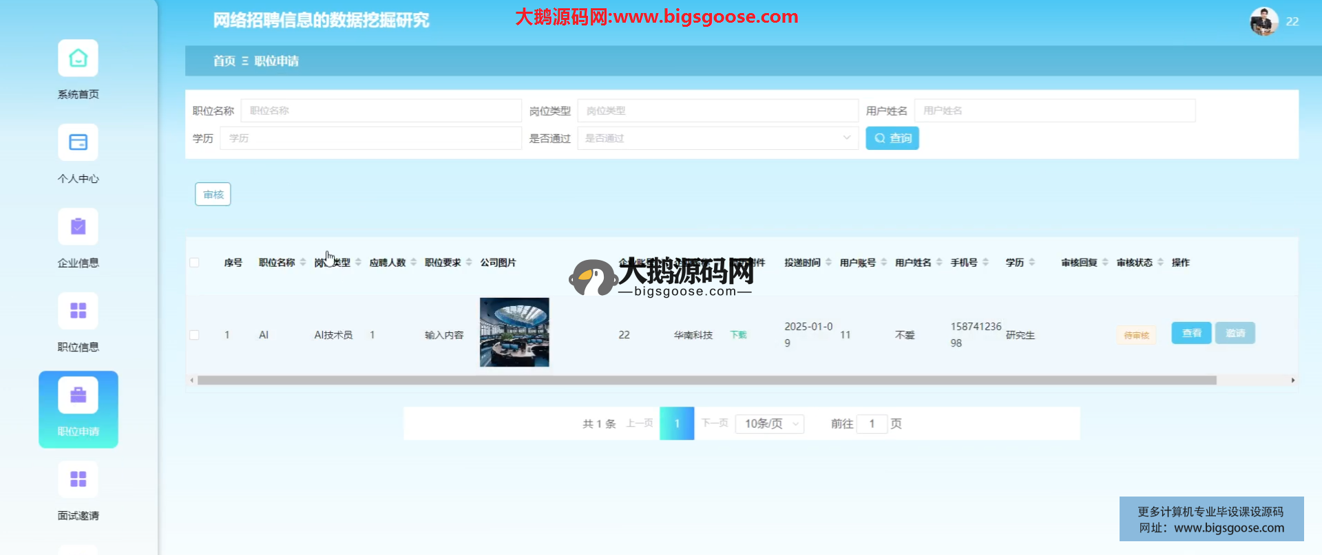 聚焦网络招聘信息,运用数据挖掘技术为求职者与企业搭建高效对接平台,实现职位精准推荐、申请流程可视、社区互动活跃,助力人才与岗位智能匹配。