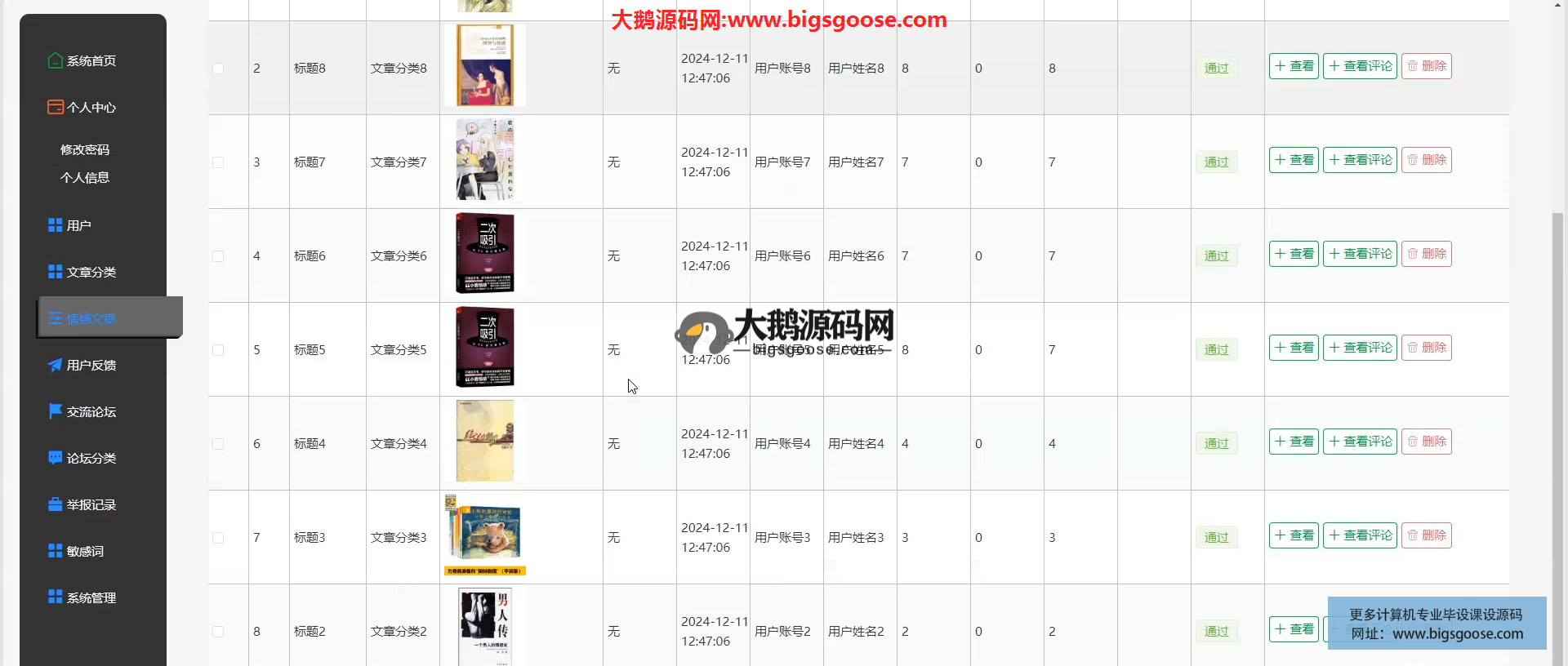 文章管理:审核投稿,设置置顶、加精,违规内容下架