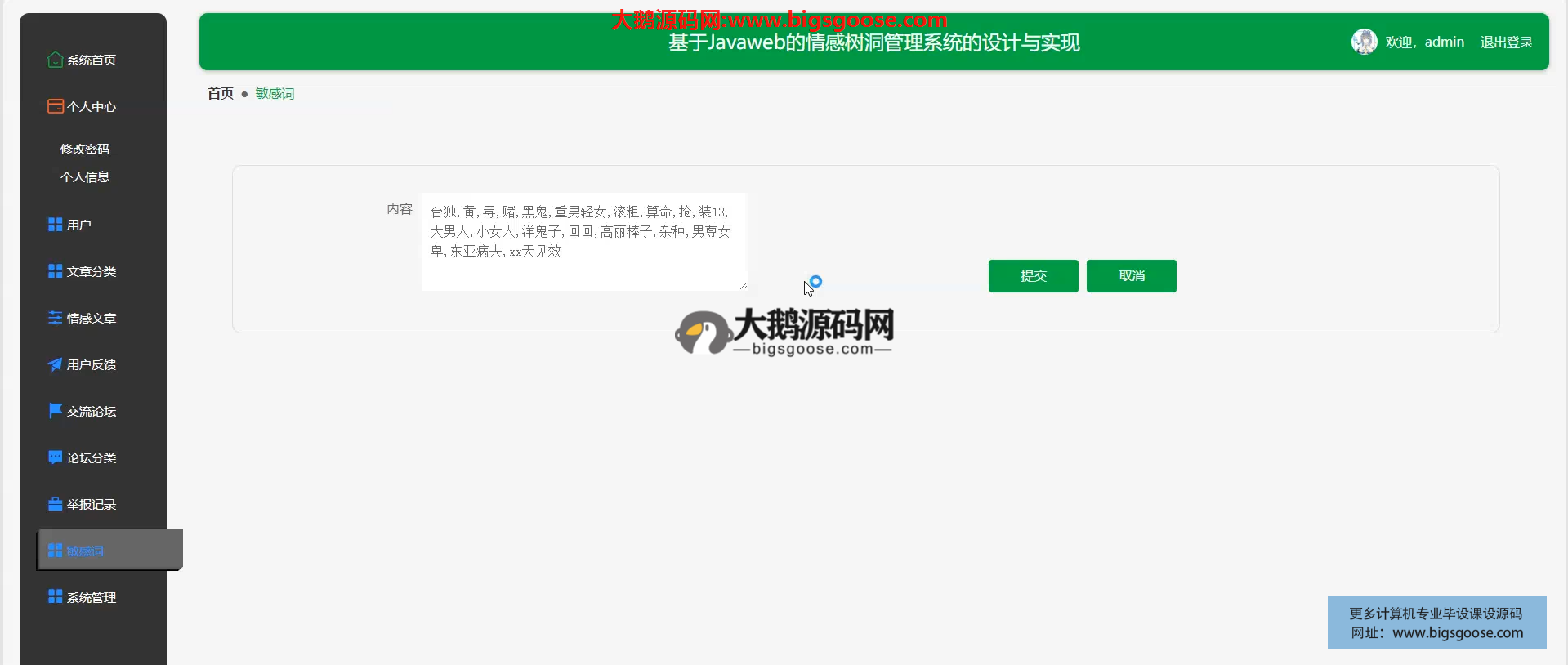 基于SpringBoot框架实现的情感树洞管理系统,本项目适合作为计算机毕业设计、java毕业设计、微信小程序毕业设计、课程设计、大作业等参考和学习,另外本站承接计算机毕设项目开发、毕业论文辅导、论文修改、降重润色、程序讲解、答辩辅导、开题定题等毕业一条龙服务,包原创、包通过!欢迎咨询~