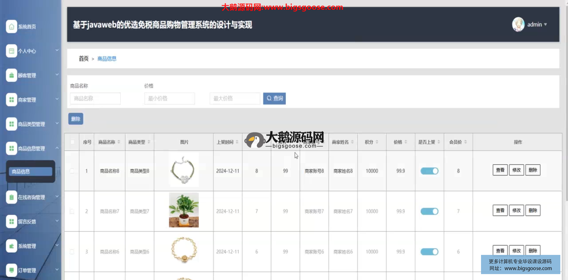 商品信息浏览:图文、价格、税率、库存实时展示,支持多维度筛选
