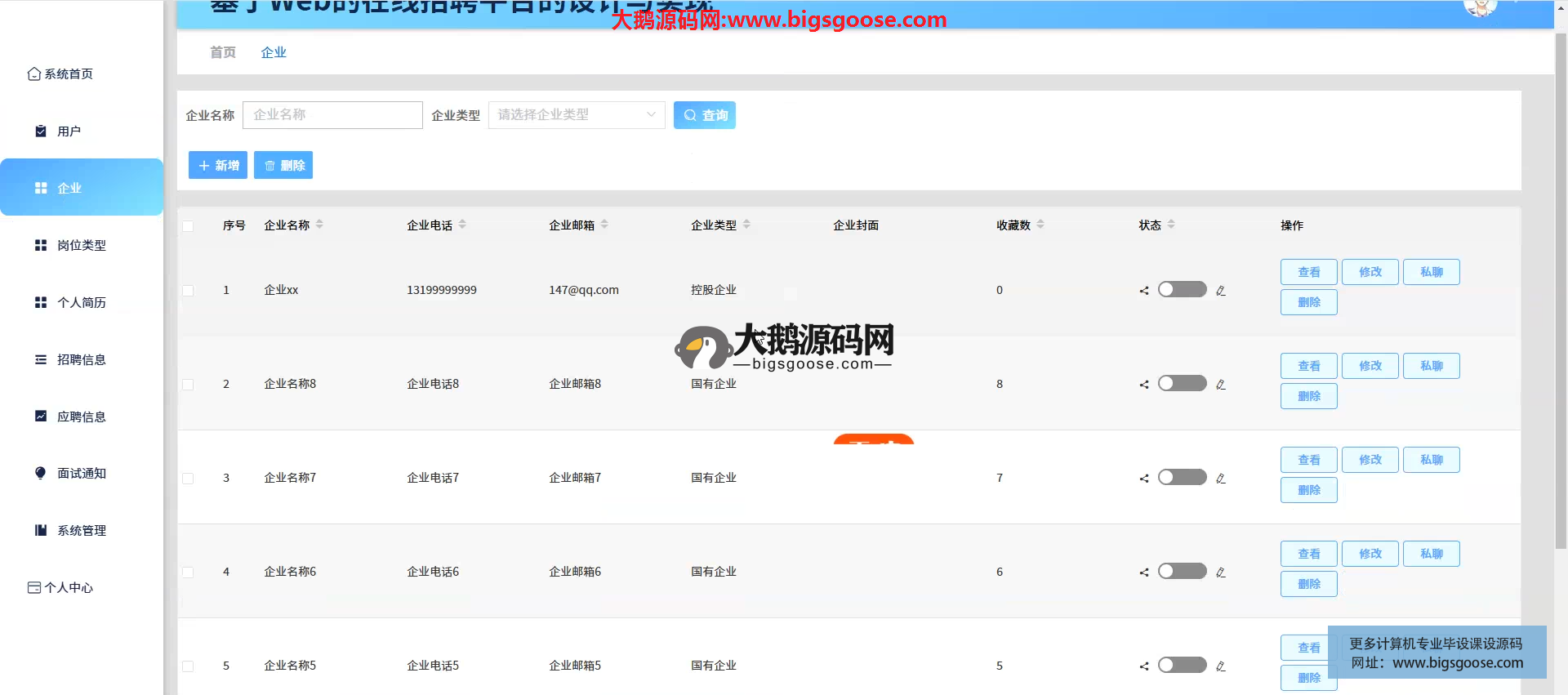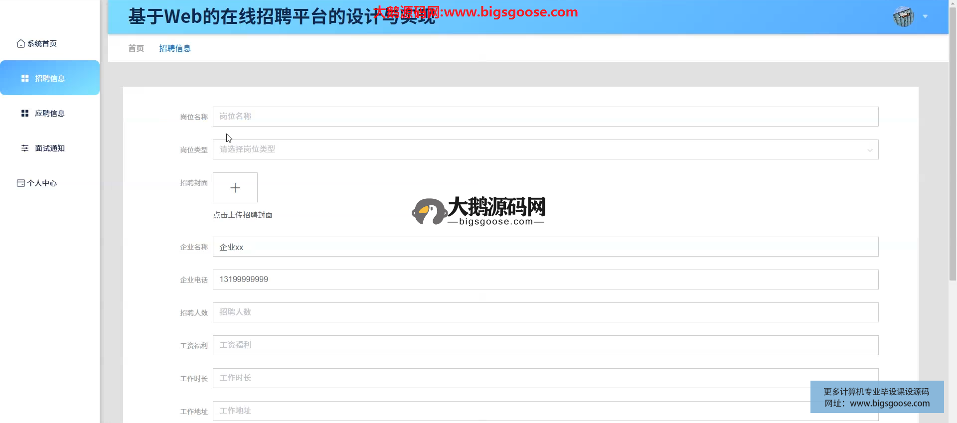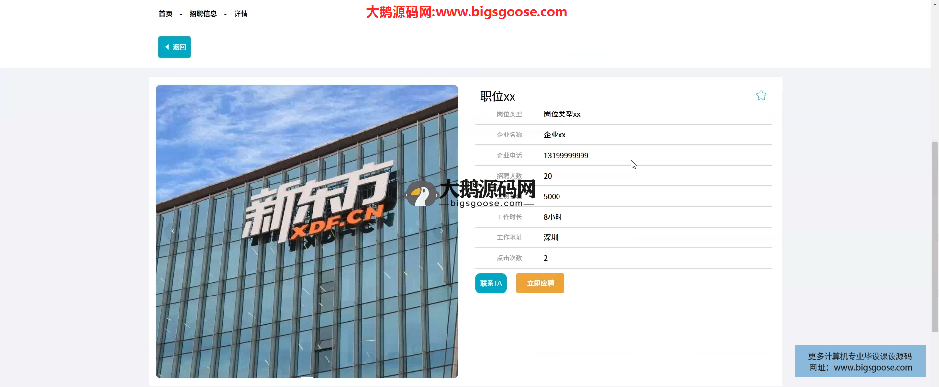 “无忧招聘”面向求职者与企业,提供一站式线上招聘服务:用户浏览资讯、投递简历、联系企业;企业发布岗位、管理面试;管理员后台统筹用户、企业与内容,实现招聘流程高效化、智能化、可视化。