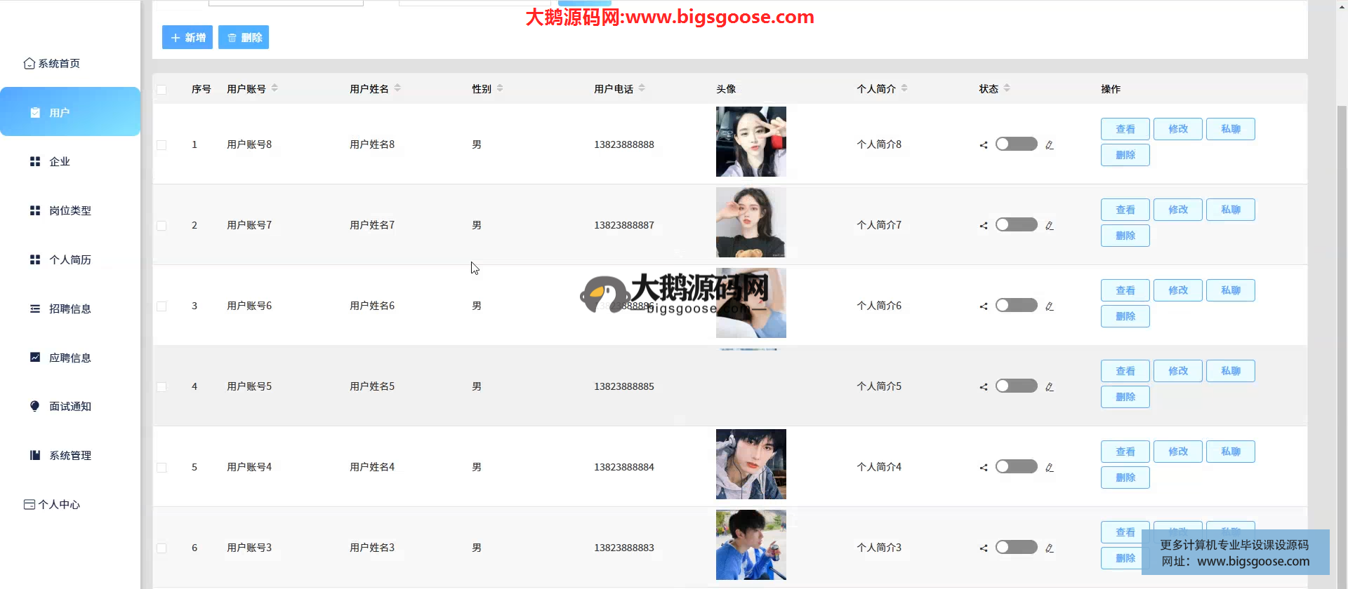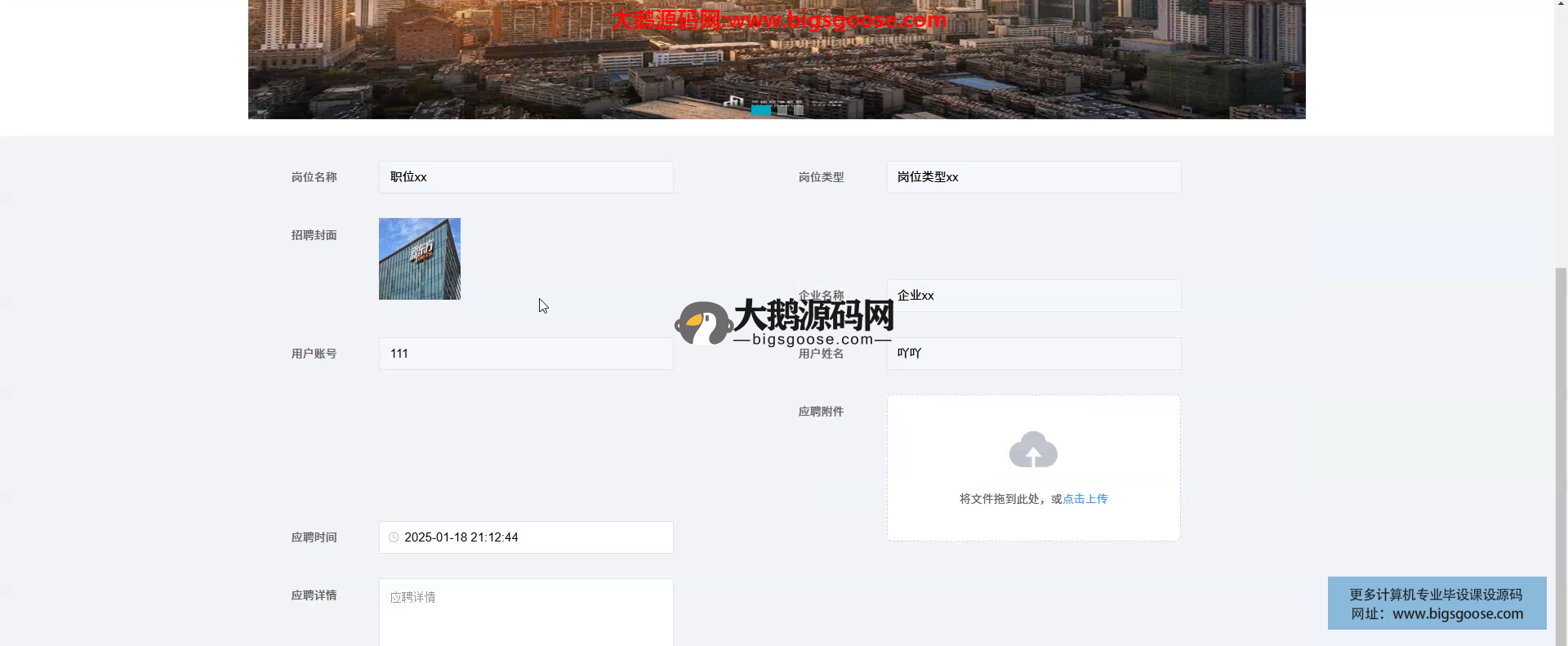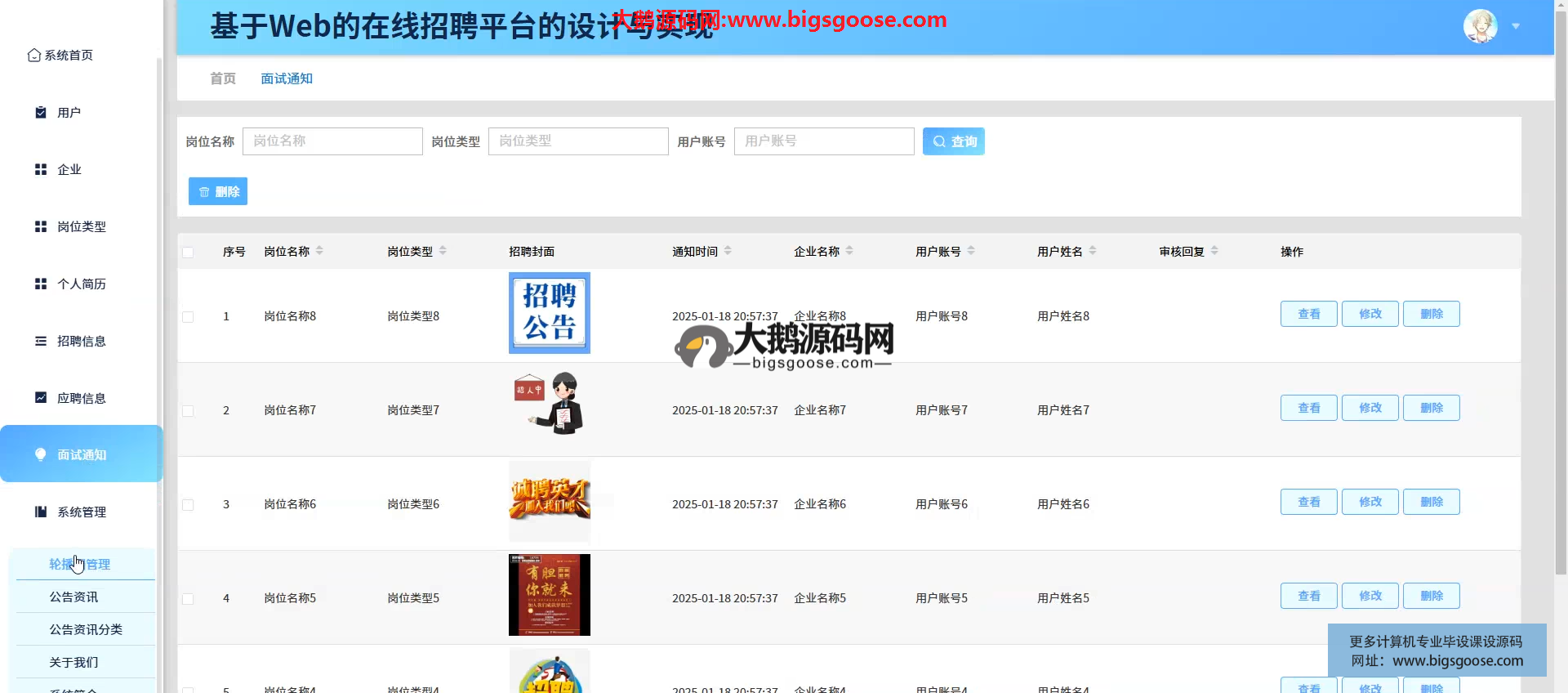 “无忧招聘”面向求职者与企业,提供一站式线上招聘服务:用户浏览资讯、投递简历、联系企业;企业发布岗位、管理面试;管理员后台统筹用户、企业与内容,实现招聘流程高效化、智能化、可视化。