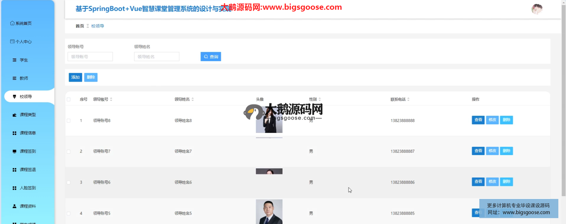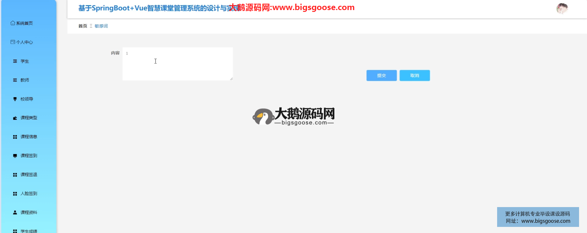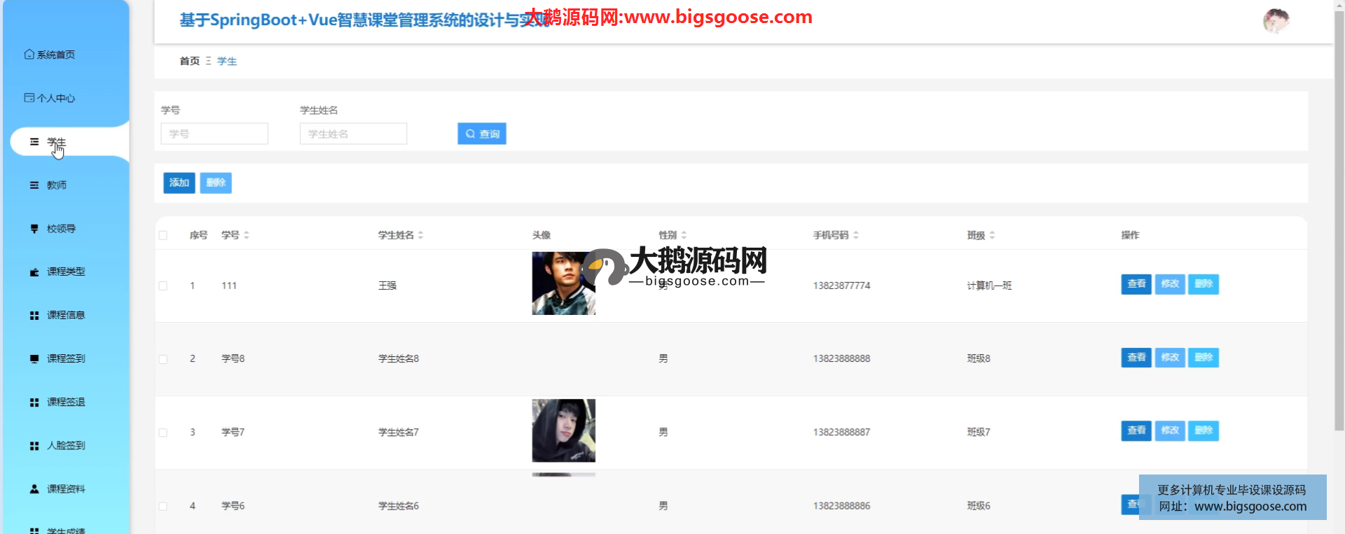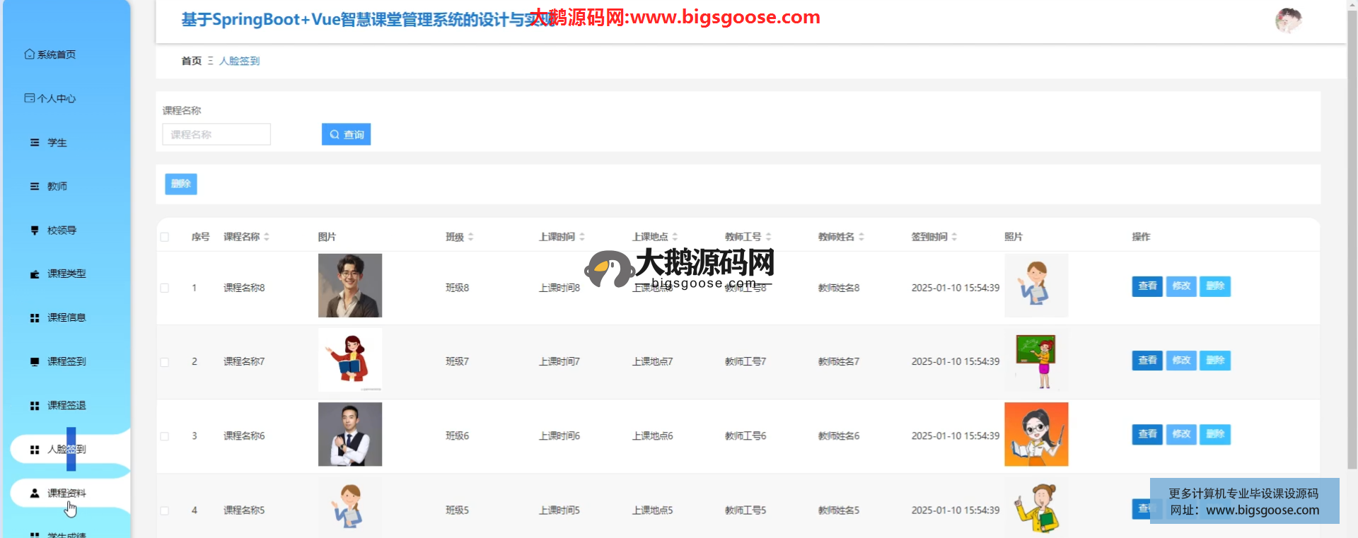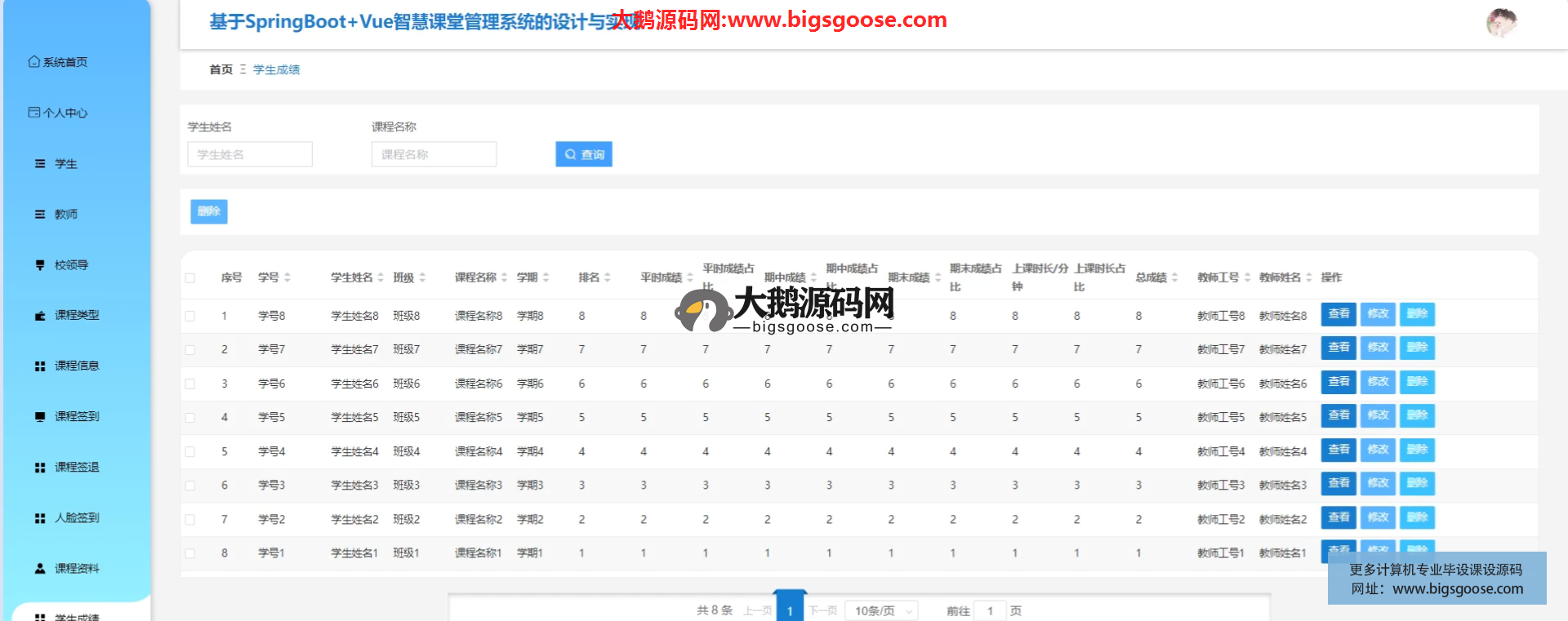 “智慧课堂管理系统”打通课前、课中、课后全流程。学生在线查看课程、签到、评论;教师发布资料、登记成绩;校领导监管教学秩序;管理员统筹用户、课程与系统,实现课堂管理数字化、教学过程可视化、评价反馈即时化。