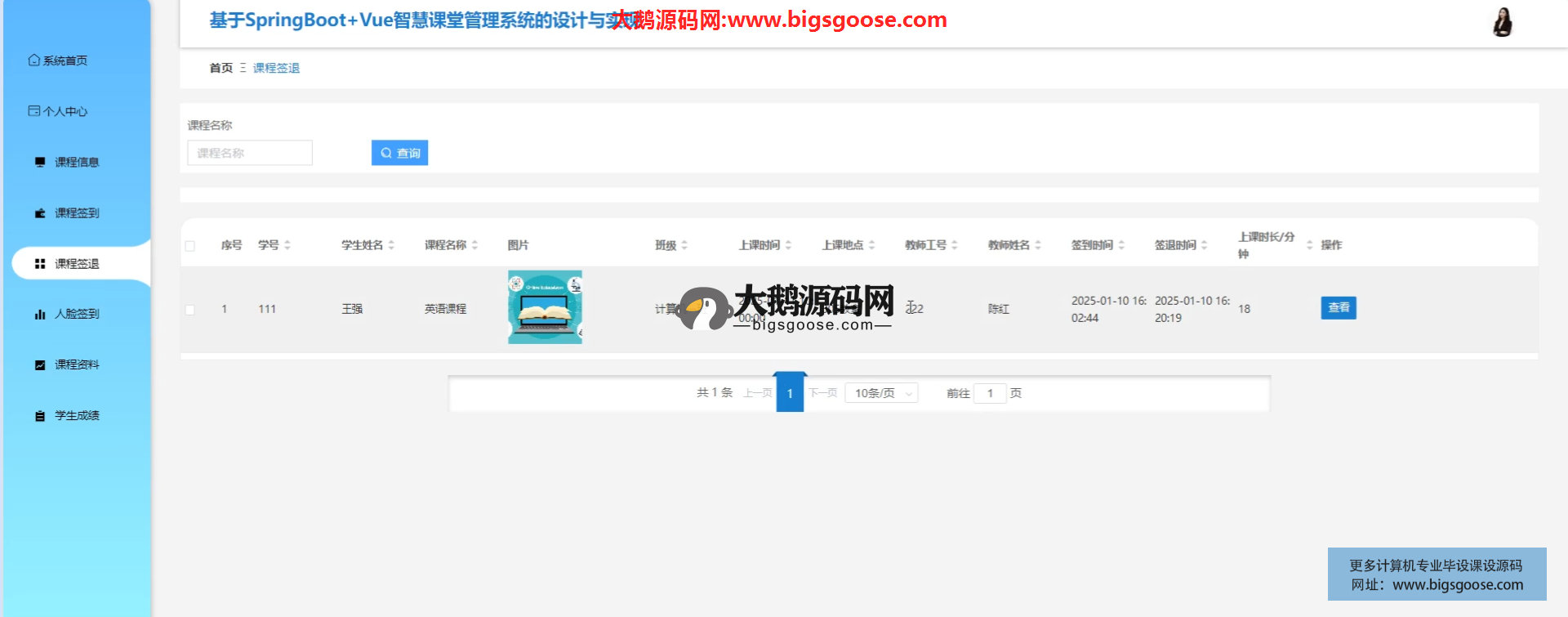 课程签到/签退:GPS+二维码双签到,迟到早退自动标红,缺勤微信提醒