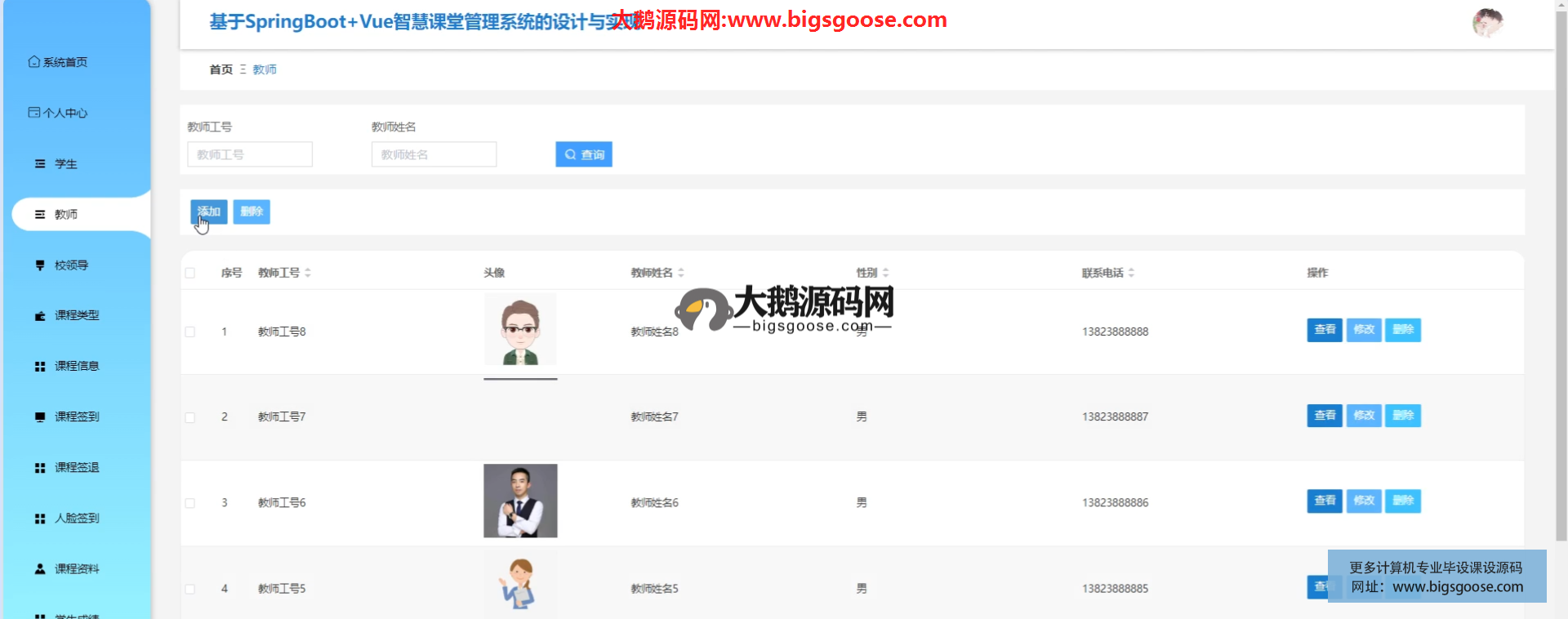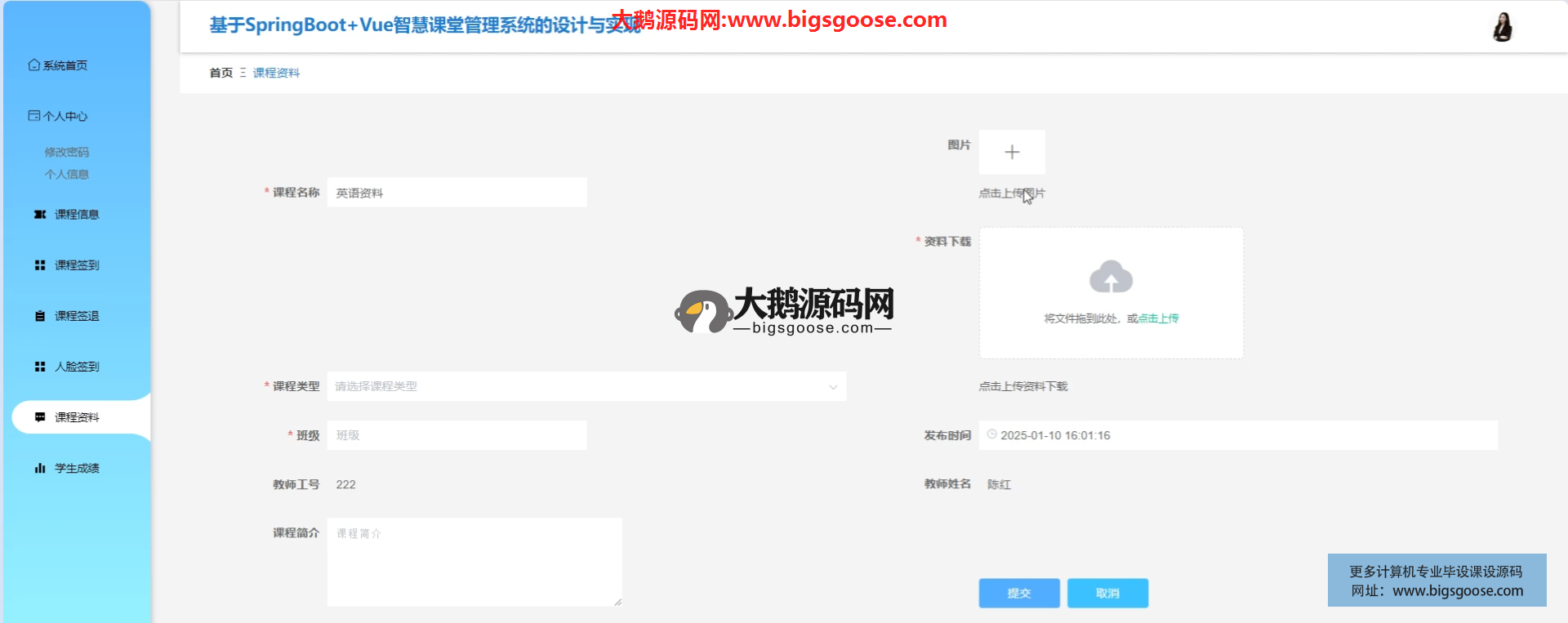个人信息管理:工号、职称、联系方式、头像自主维护,支持修改密码