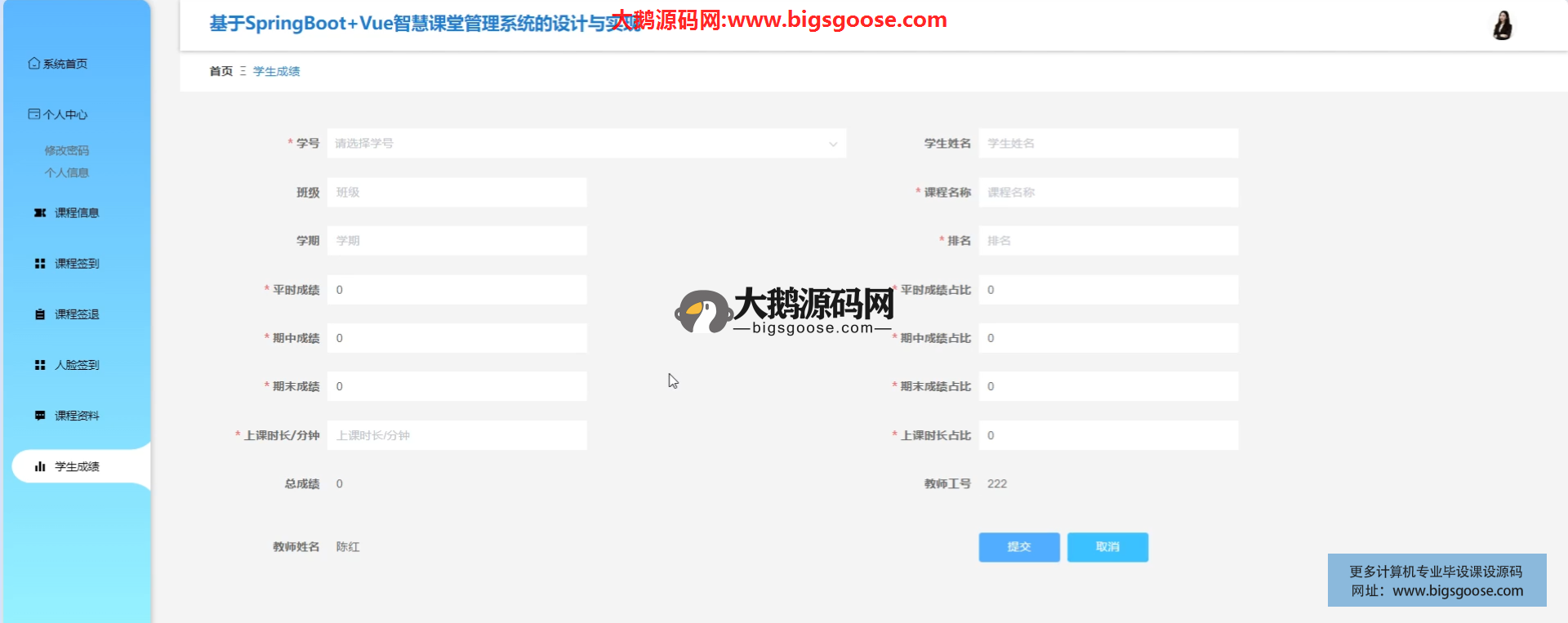 学生成绩管理:在线录入或批量导入,权重自动算总评,提交后锁定