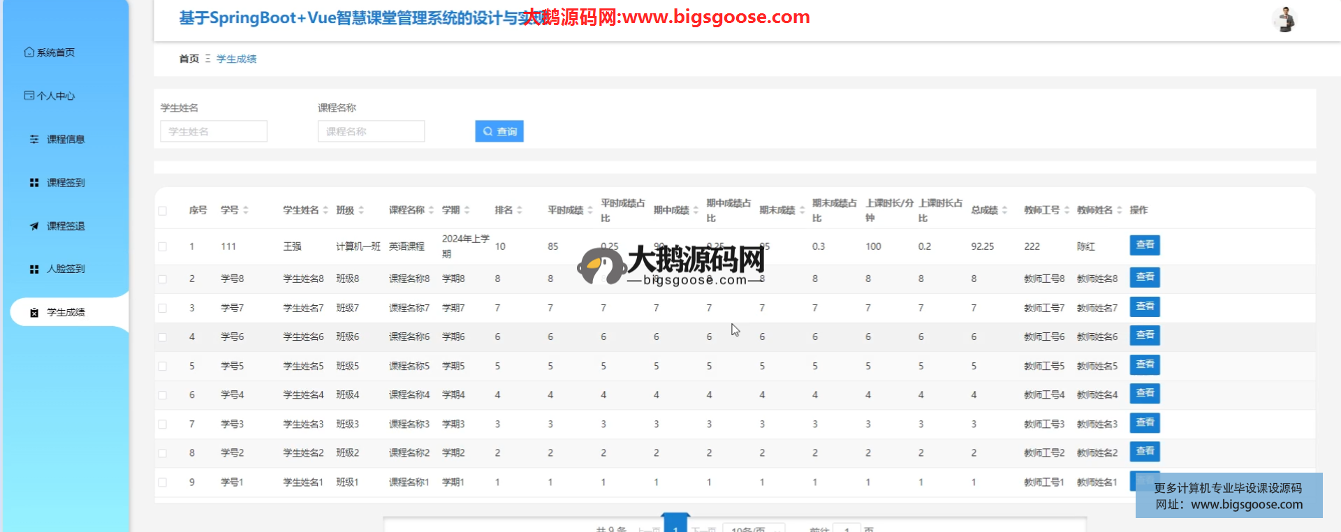 学生成绩查看:平时、期中、期末加权自动算,排名曲线可视化