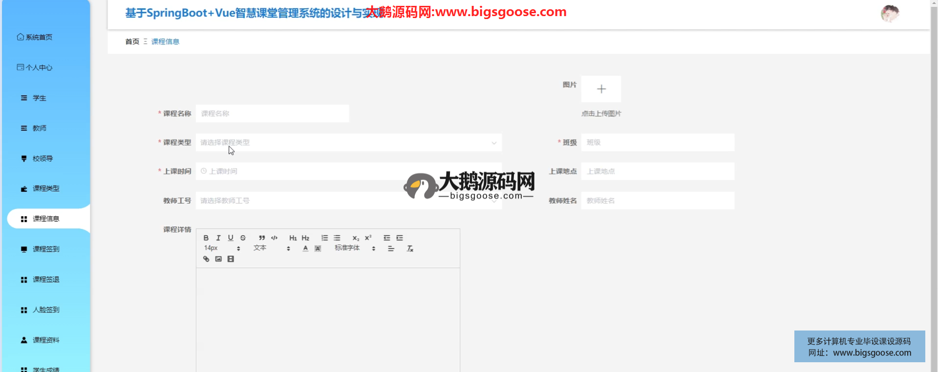 课程信息管理:编辑大纲、封面、容量,设置考核方式与平时权重
