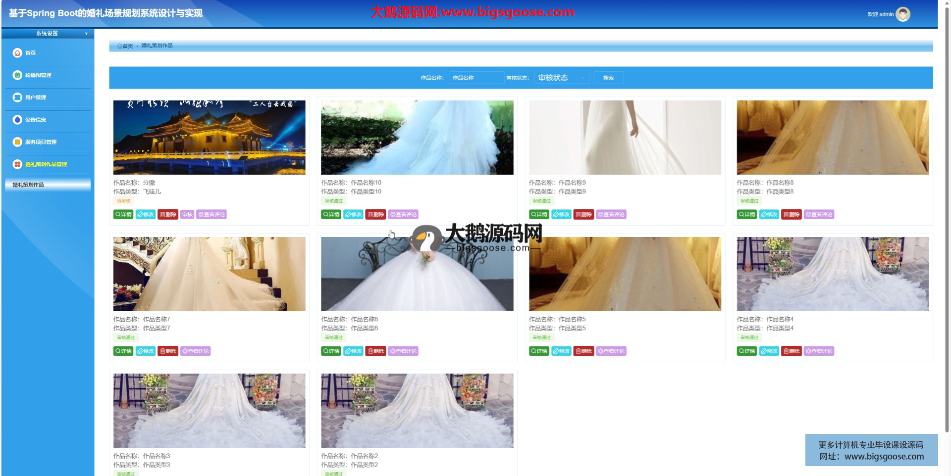 婚礼策划作品管理:审核案例质量,优质作品首页加权展示,违规立即下架