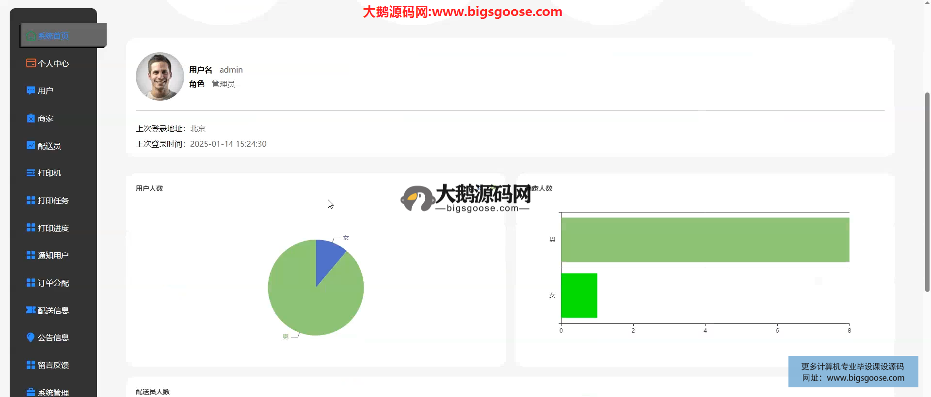“校园打印服务平台”把文印店搬上云端:学生在线上传、支付、追踪,商家智能分配、打印、配送,管理员统一监管设备、订单与售后,实现“文件秒传、打印即达”的校园文印数字化。