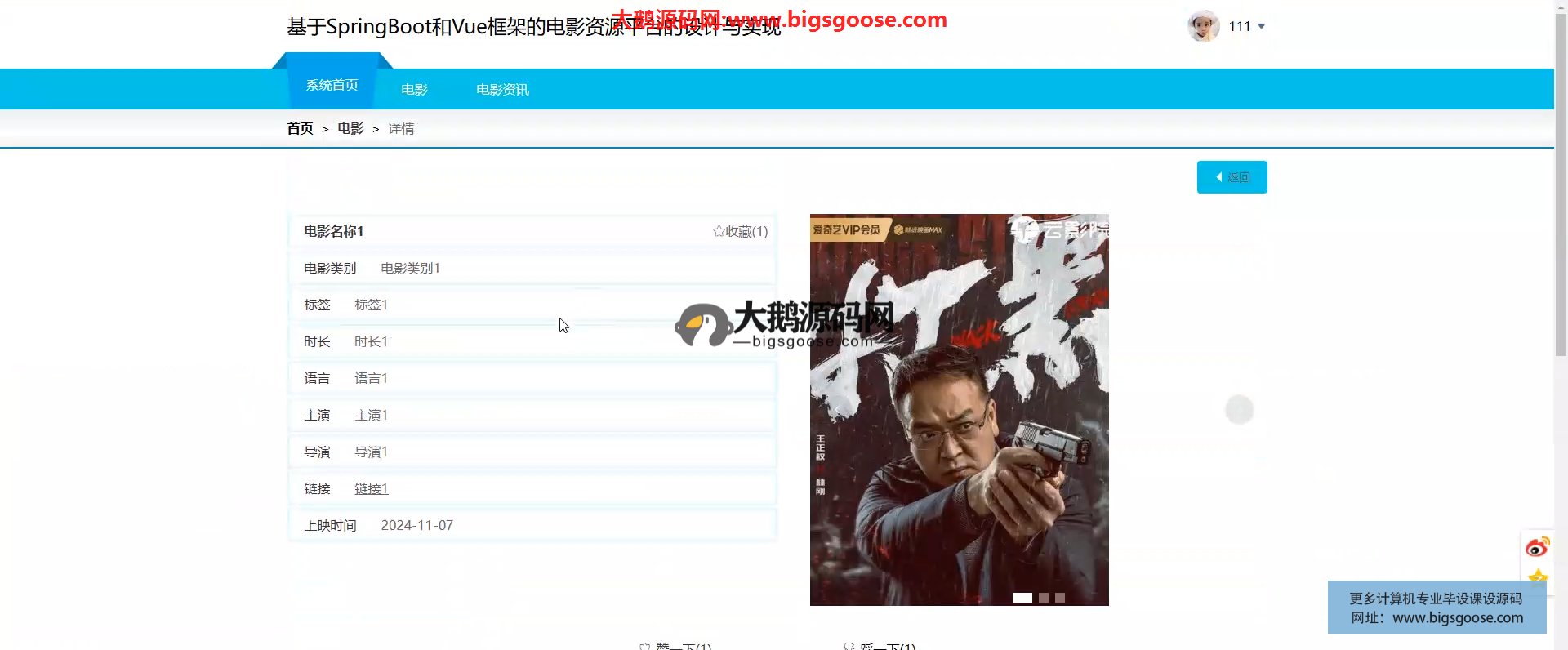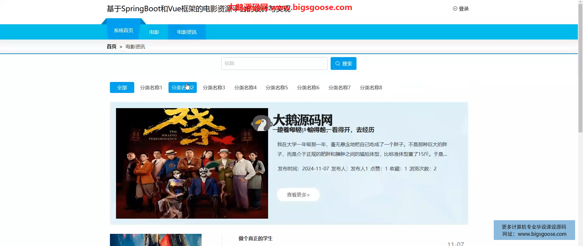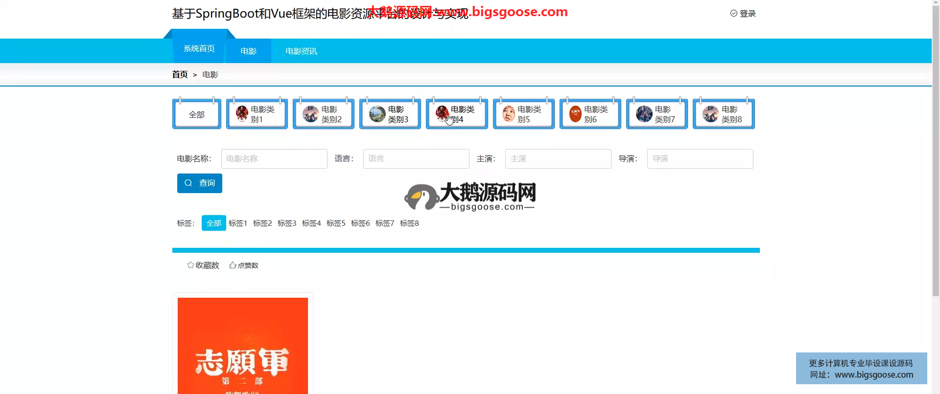 基于SpringBoot框架实现的电影资源平台,本项目适合作为计算机毕业设计、java毕业设计、微信小程序毕业设计、课程设计、大作业等参考和学习,另外本站承接计算机毕设项目开发、毕业论文辅导、论文修改、降重润色、程序讲解、答辩辅导、开题定题等毕业一条龙服务,包原创、包通过!欢迎咨询~