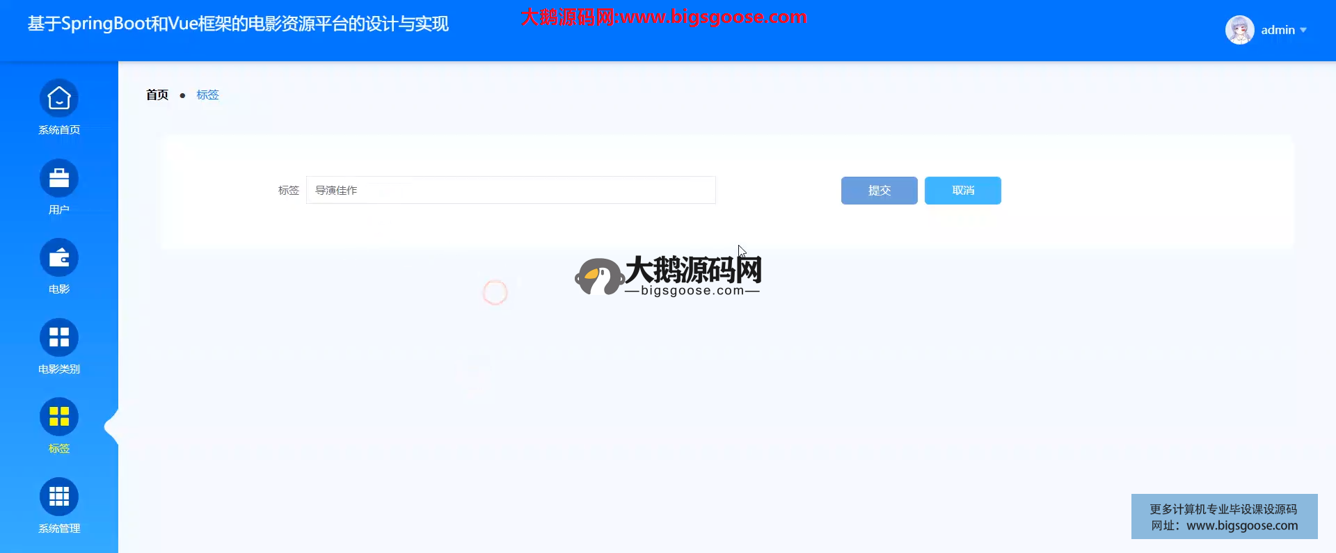 电影标签管理:关键词增删改,热门标签首页加权展示
