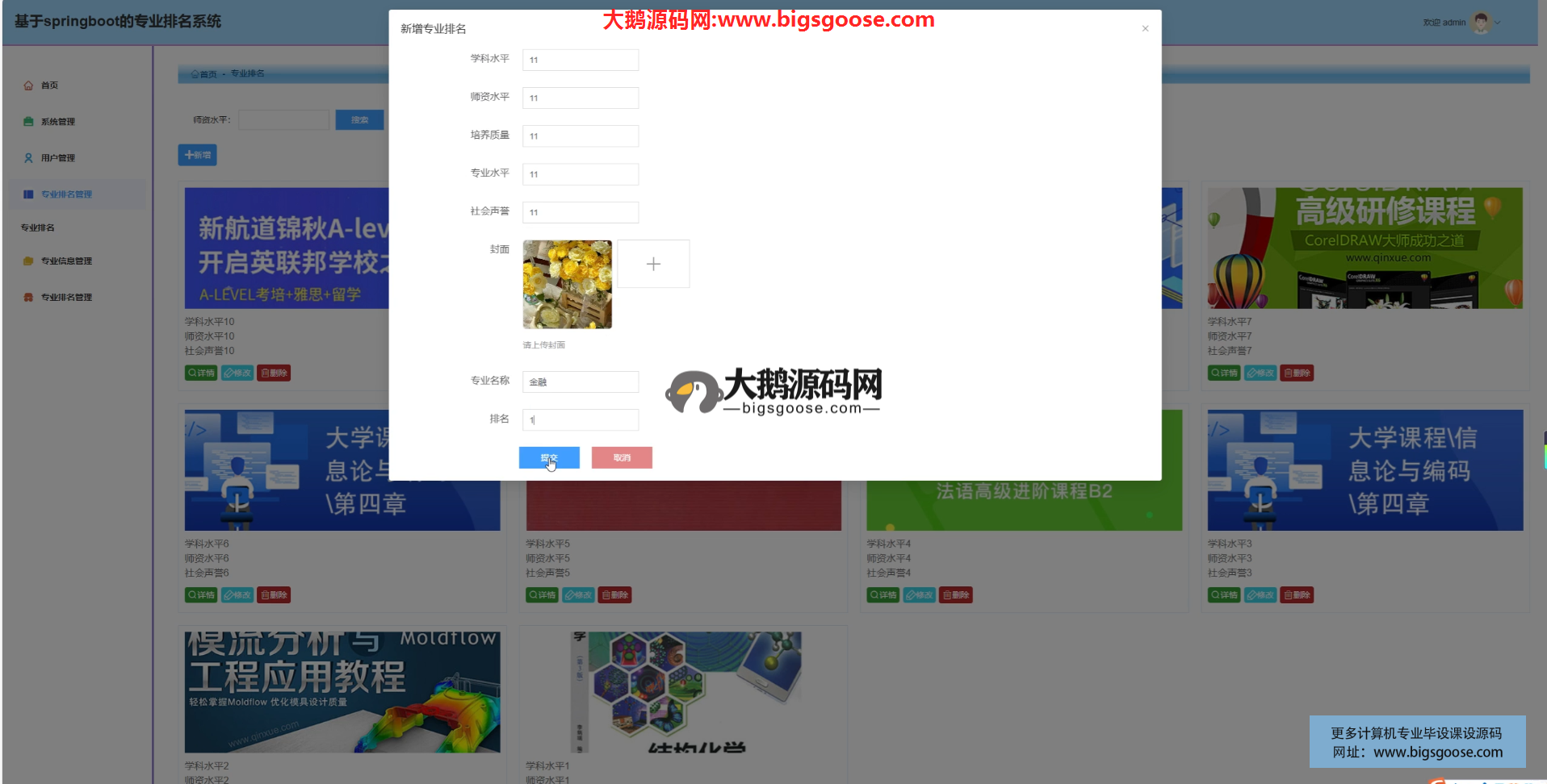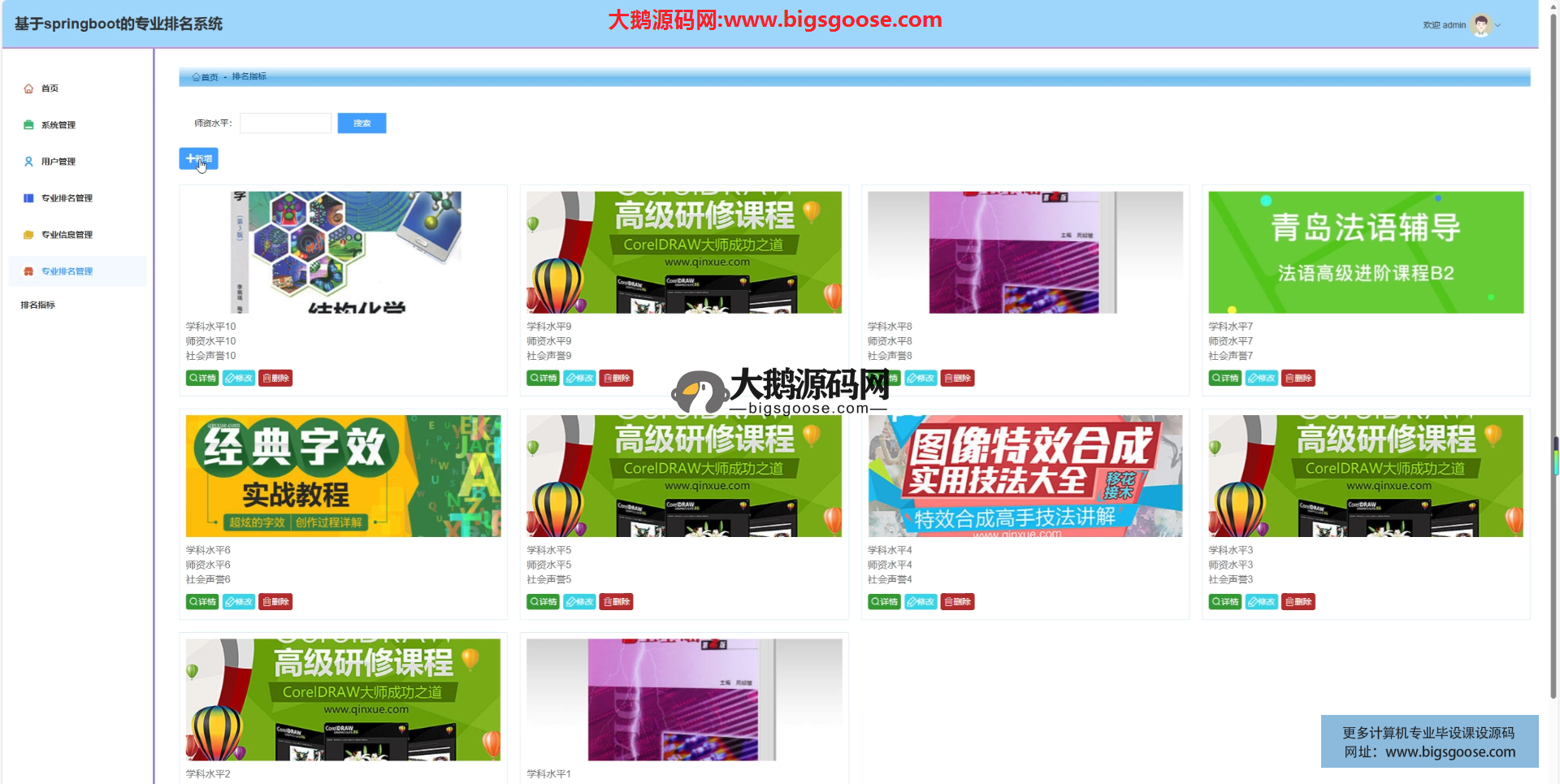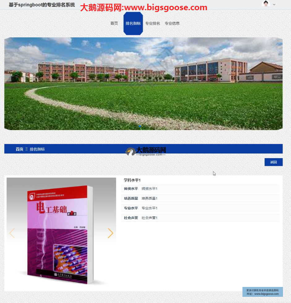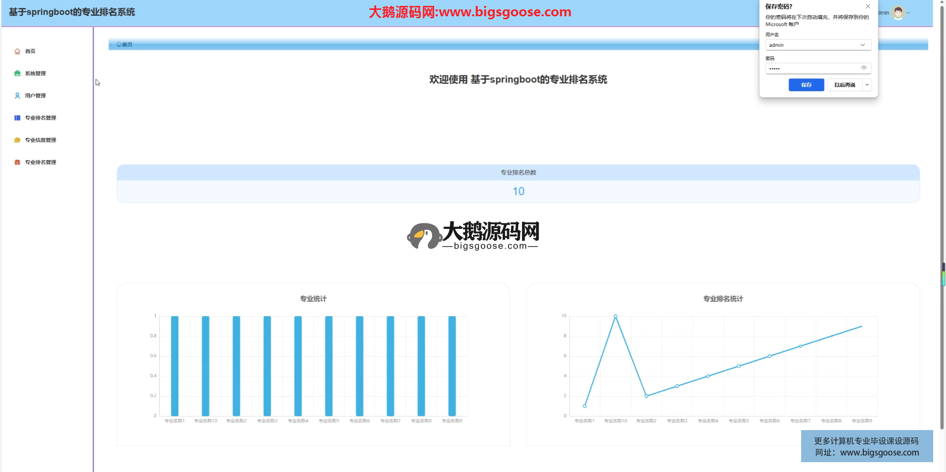 “专业排名系统”聚焦高校学科竞争力,为学生提供透明、多维的排名查询与个人定位;管理员后台维护指标、专业与用户权限,实现数据驱动、实时更新的专业评价体系。